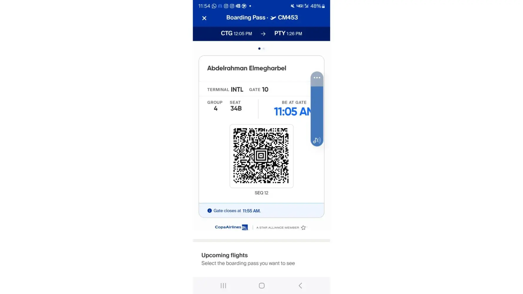 Misleading information. Boarding pass and email say that gate closes at 11:55 am. We arrive at the gate 11:40 and they said it is already closed.