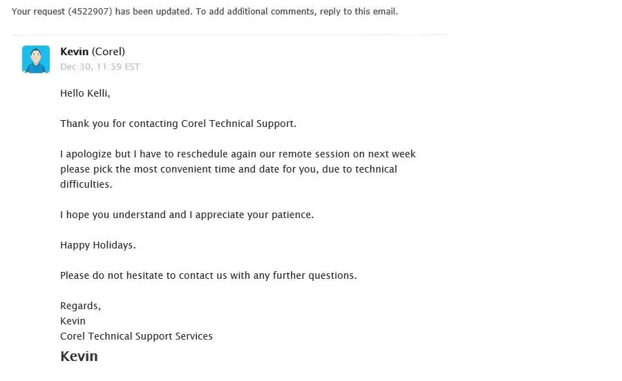 Thank you for contacting Corel Technical Support.