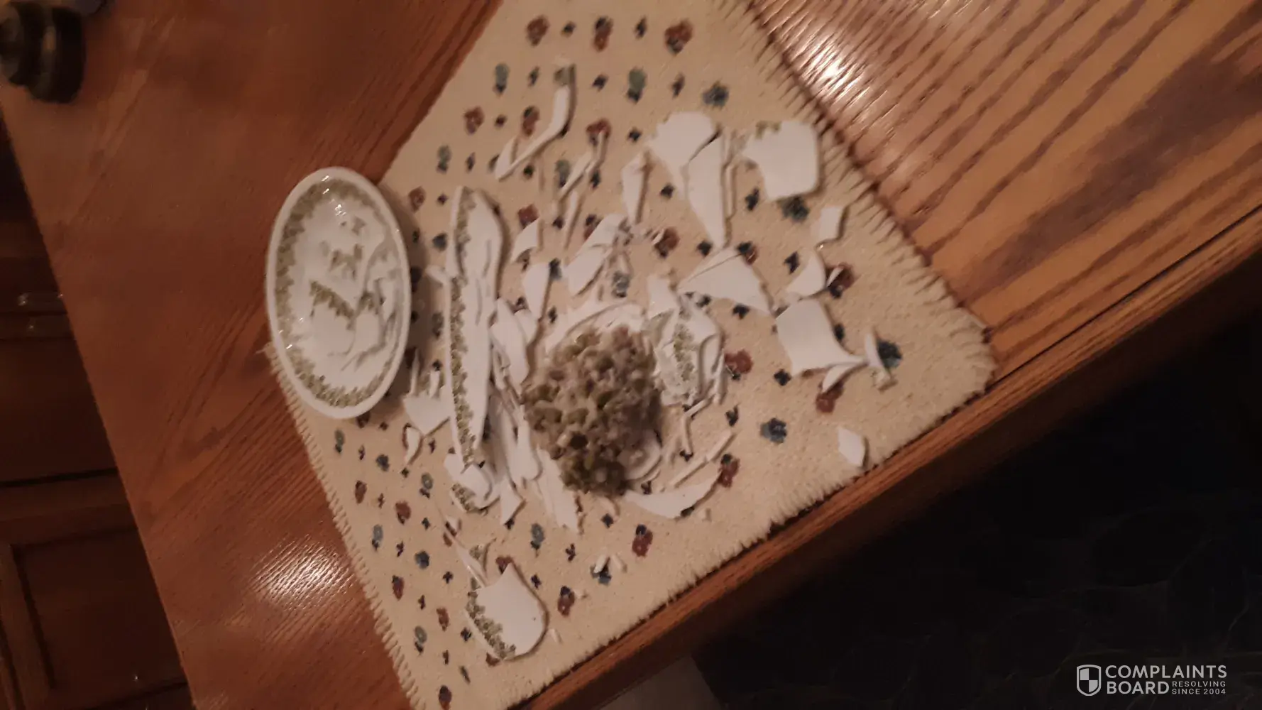 unpacked my dishwasher and a bowl splintered into two large and many little pieces. Some of shards got into drain pipe of dishwasher and now it needs fixing.