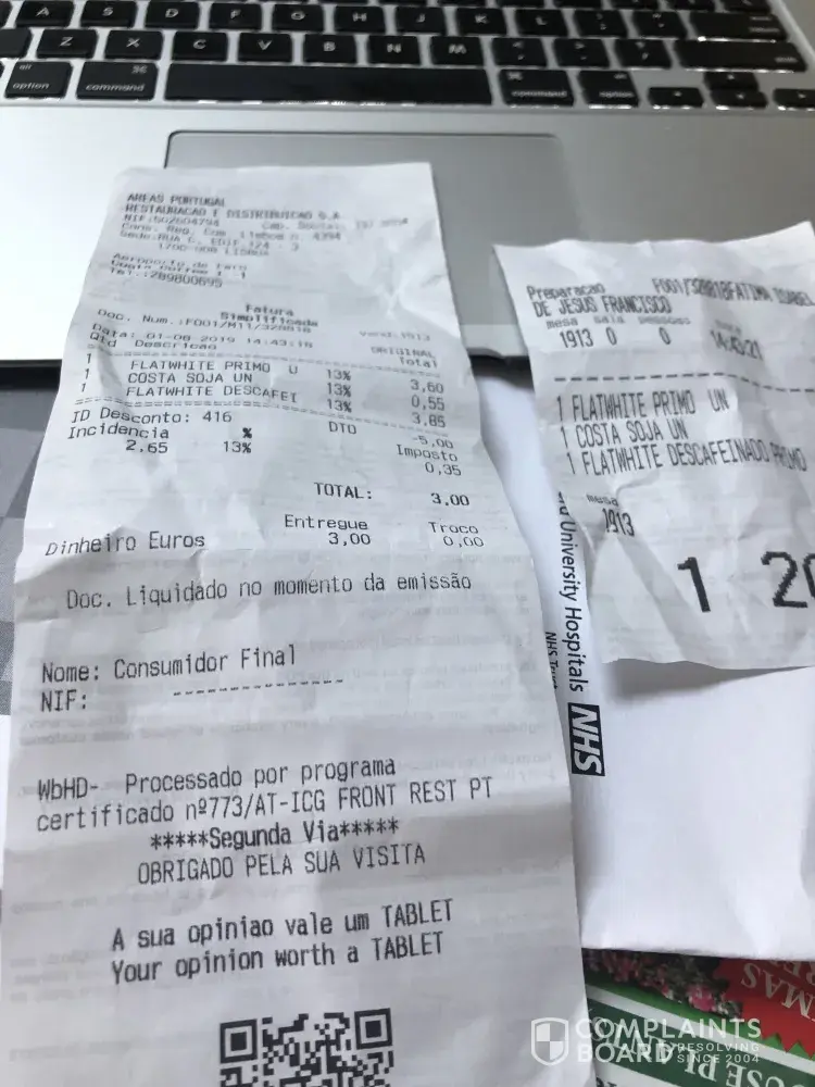 On the 1st Aug 2019 I visited Costa Coffee in Faro Airport, Portugal. I bought 2 coffees. When I paid for my order at the till, I asked for my Costa Coffee points and was informed by Barister that I couldn't have them as it was franchised. I think this is not acceptable, as I have never been made aware that you can't collect points in a franchise. I only purchased the coffees in the Costa as I was expecting to collect the points, so I could meet the points target for a free coffee (this offer has now finished 04/08). I am highly disappointed by this, and would like the points adding to my card and I would like to be offered a free coffee, as this is what I would have received if you allowed me the points. Please see attached images of my receipts as proof of purchase.