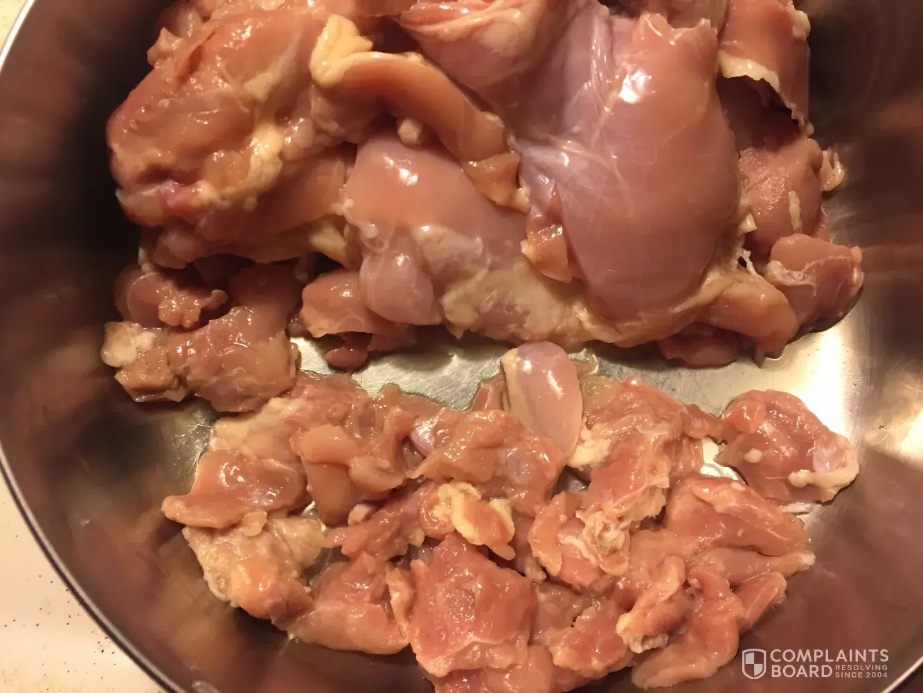 After purchasing the six package of Kirkland boneless legs and thighs, I opened two packages today in order to marinate and grill them. To my surprise, instead of usual four to five WHOLE pieces, I found grape-sized chunks (more than half of one package). I am unable to go to Costco Gaithersburg store (#213) tonight to complain in person, and will not feel comfortable carrying raw pieces of meat to Costco personnel.