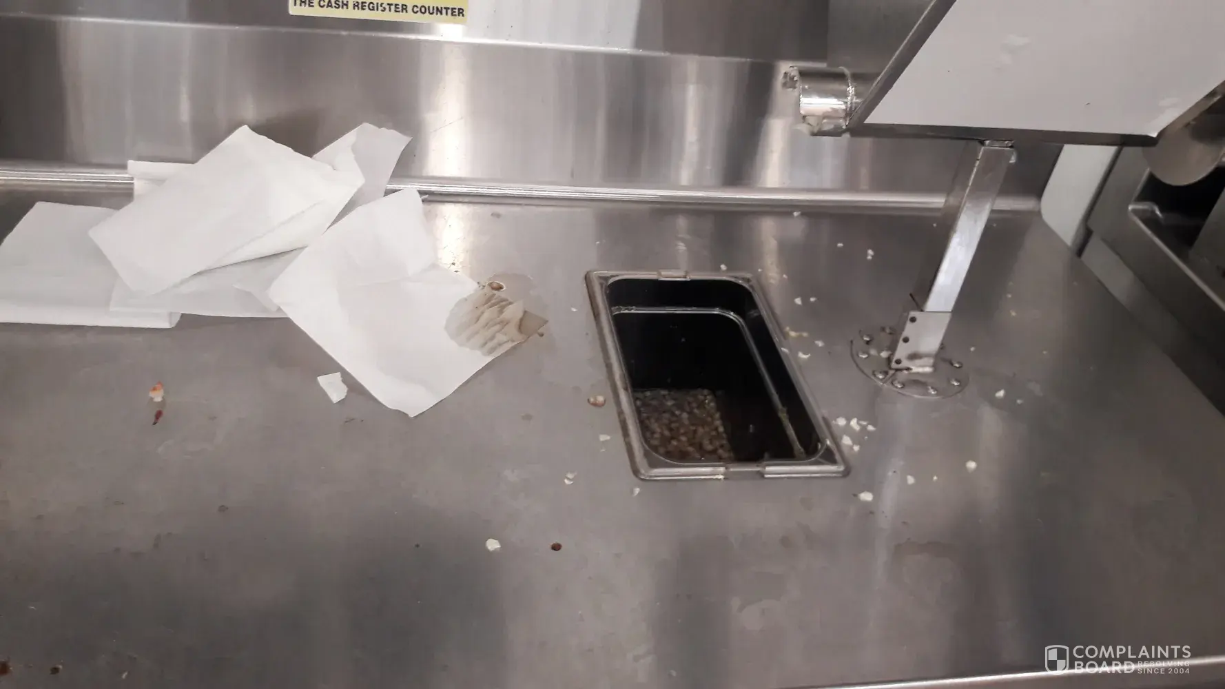 I am not a costumer, I am member since 1996 and today October 26 I was extremely surprised when I saw the state of carelessness in which the food court was. I think a corporation like you should never let something like this happen. I talked to a supervisor and I showed him the photos, I asked him if that condition was acceptable. Two minutes later he sent people to clean it. A lady that took with her bare hands the onions that were watered and then with a dry paper that she took from the cash register where she was helping, simply wipe the place, and a gentleman who swept 3 napkins that were on the floor and rested the napkins. They did not clean it!.