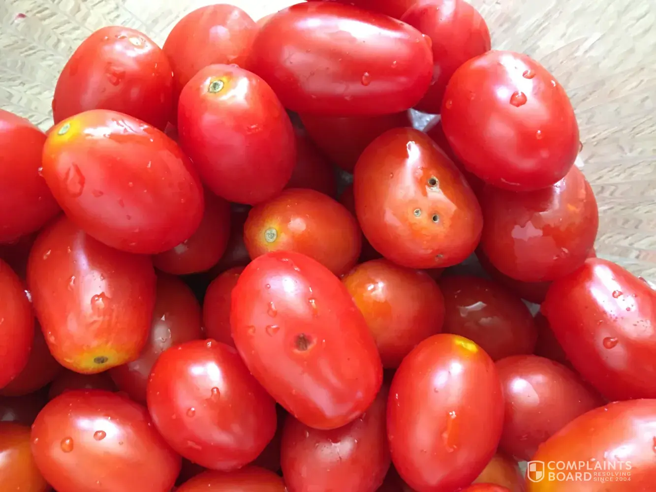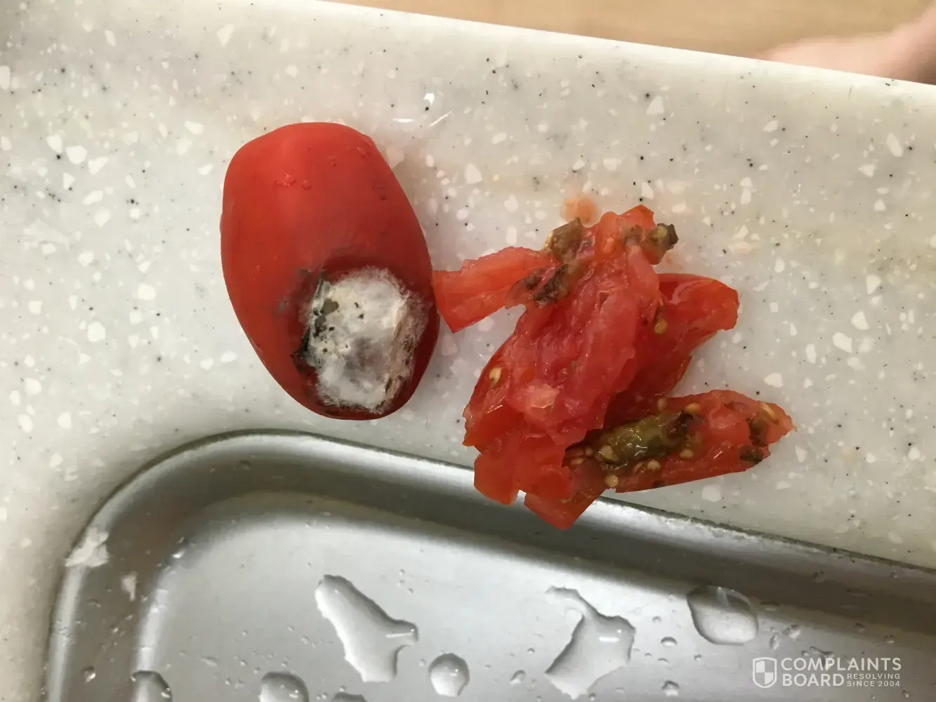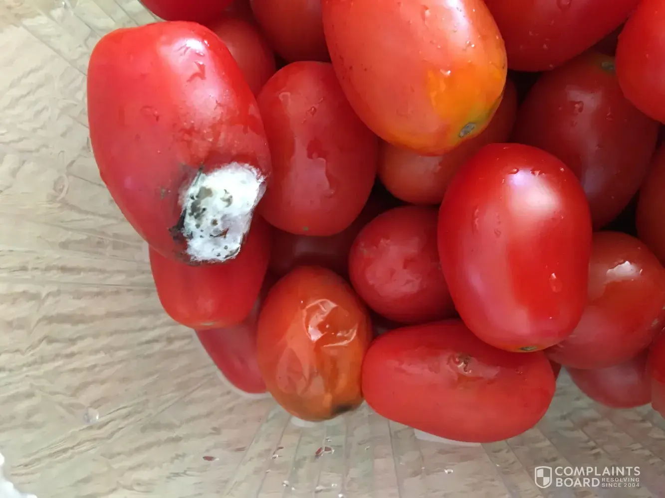 I bought Cherry tomato yesterday(11.Aug.2017). I drove to my house directly spent just 25min and put that Cherry tomato to frige directly. Home frige still working good. Today(12.Aug.2017) i washed it and ate. I was found one of rotten cherry tomato during wash that and skip it up. Because it normally possible happens. But when i chewed it i was feel little bit different with others. So i disgorged cherry tomato from my mouth and took a picture and upload to here is first picture and i looked it up how many rotten tomatos in my tomato container. I found 7 or 8 rotten tomatos.