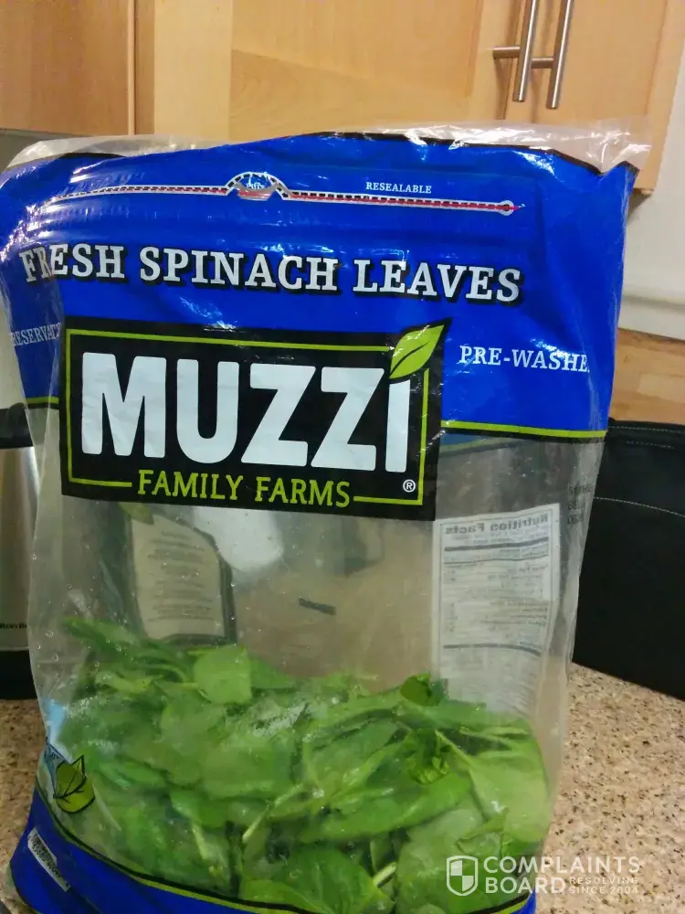 Recently we purchased a bag of fresh spinach leaves (MUZZI) around 25th June (serial no. [protected]) at Costco Wholesale.