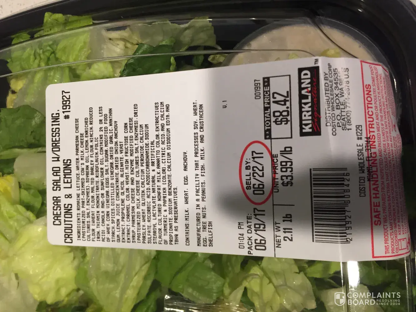 I have recently experience an inconvenience that could have turned fatal if I did not pay close attention to what I was eating. I had purchased a Caesar Salad on the 19th of June to have it at home for lunch. Served It to eat it for lunch on the 20th and wile I was eating it I felt something odd from the salad. Removed it from my mouth and it was a 9" piece of plastic. Obviously I went to it and made sure that it was not a mistake on my behalf when I opened the salad, dressing or croutons. The plastic was from something else that had gotten mix with the salad it self.
