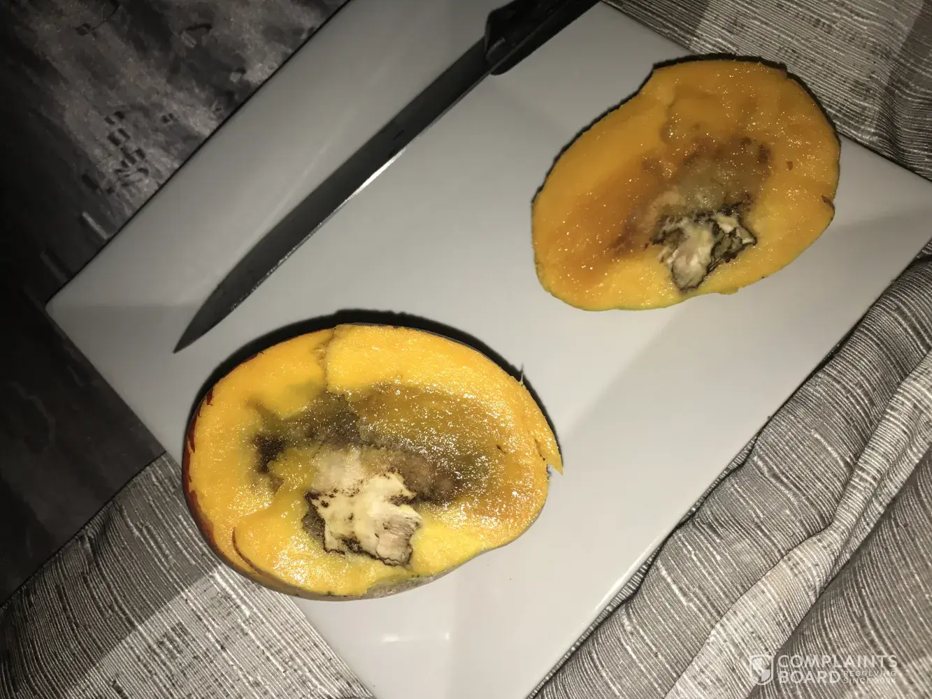 My kids got sick and kept throwing up all day. I assumed it was the stomach flu but noticed they were throwing up what looked like mango chunks. I normally buy mangos from Costco and my kids love them and I allow my kids to just grab fruit whenever they are done with chores or when they get home from school. I started asking my 6 year old if he can remember eating anything that made him sick and he said he only ate a mango. I decided to grab a mango from the box and cut it open. What I found was disgusting and disappointing! I will copy pictures below but I started cutting into all of them and they all were rotten and made my kids sick! I called customer service about it and was told it was my fault for allowing my kids to eat the mangos if it looked rotten. First of all my 6 year old would not know the difference and is old enough to grab snacks on his own. How dare that be the type of customer service I receive especially after sharing my kids aweful experience they had and throwing up with the runs. This is NOT ACCEPTABLE buyers BEWARE!