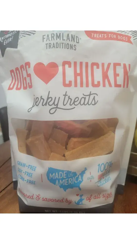 My English mastiff got extremely sick after a couple of the treats. After talking with the vet we came to realize she wouldn't pass the treats and couldn’t digest them; they are hard like rubber and so hard to break. If a small dog swallowed these they unfortunately won't make it. Several people on their website and Amazon are complaining that these treats killed their dog. Jerky should easily break up but not these. The ingredients are not even listed on the bag! After doing my due diligence, I learned the ingredients are from China so it is false advertising on the bag. Luckily, my girl is OK after being extremely sick over a week. Please please take these off of your shelves