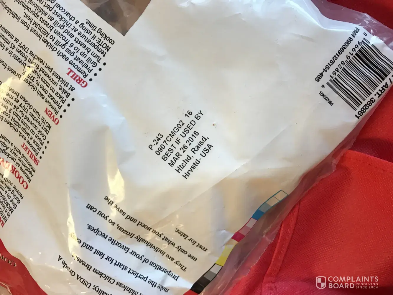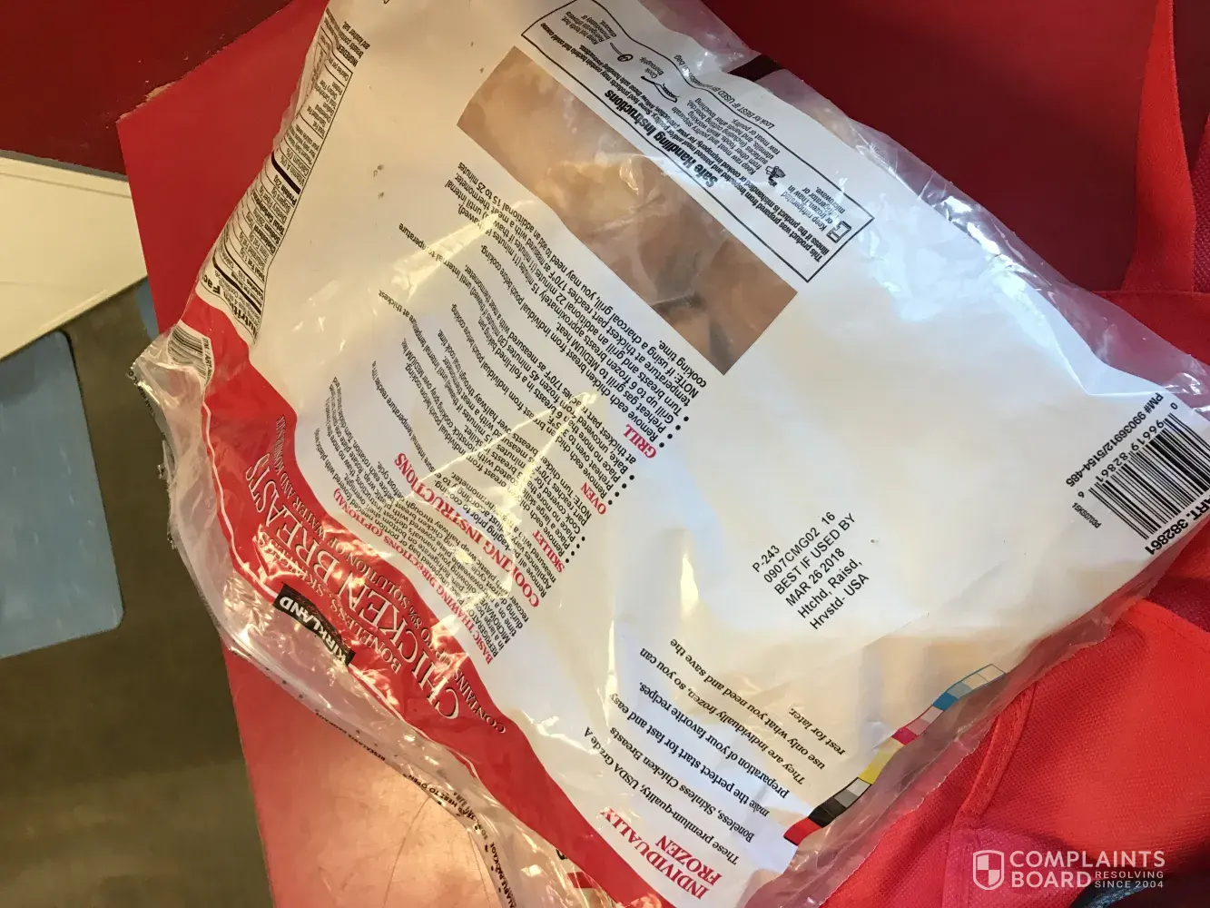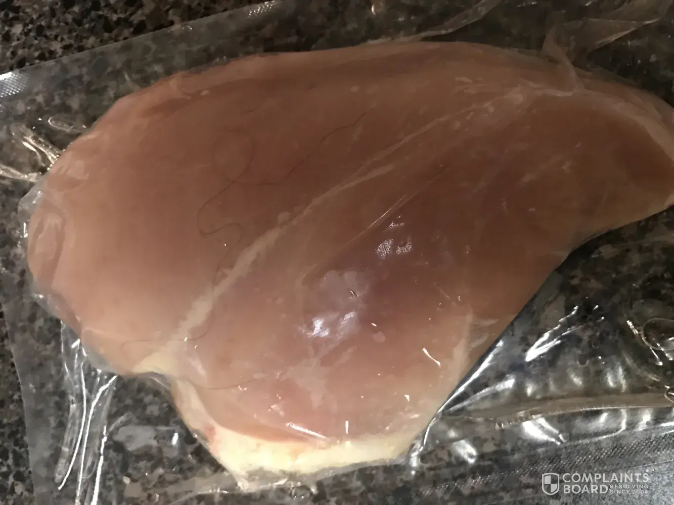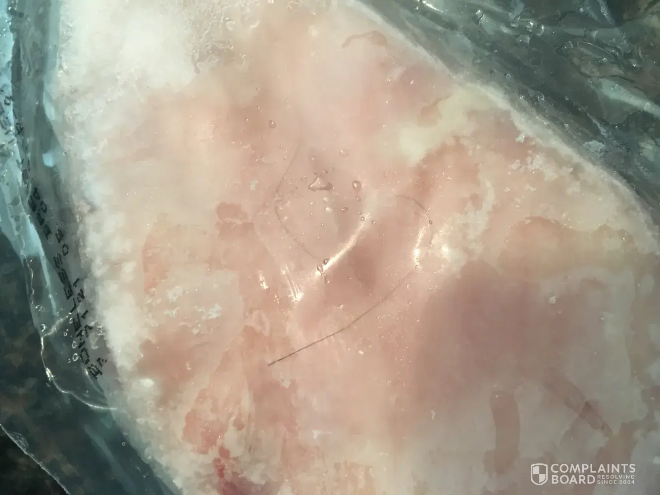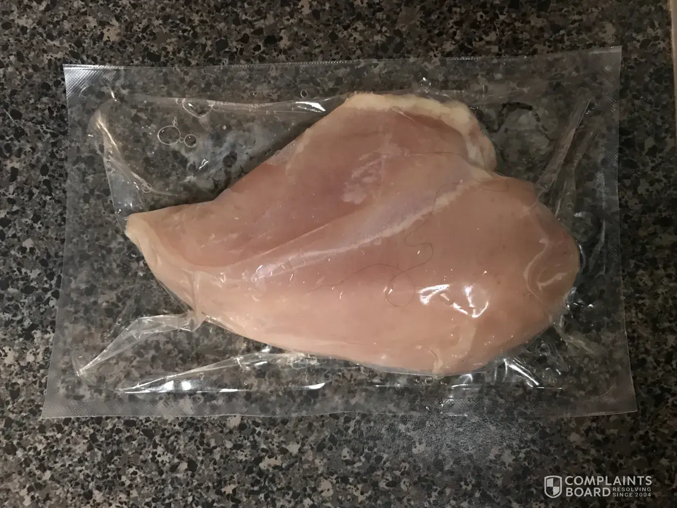 Hello, I purchased a bag of frozen, individually wrapped chicken from Costco about a week ago. The next day, I defrosted some chicken breasts to make for dinner and I found a long strand of hair in one of the sealed individually wrapped bags of chicken. Yesterday, I went to Costco Fairfield ca and returned it. I also purchased another bag from a different lot. Although it was good to be able to return it, I'm more concerned about the food safety part of it where a long strand of hair was able to get into a vacuum sealed bag and on the actual chicken breast itself. If there was one chicken breast which was contaminated, there is no evidence to know if it was an isolated incident. An object being found in the chicken is a result of cross contamination and should be investigated and appropriate corrective action should be taken. Please see the photos attached.