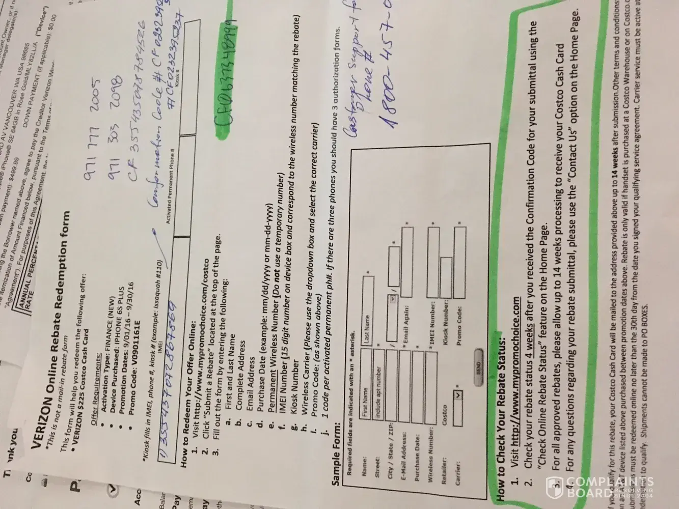 On September 1st, 2016 I stop by the Verizon wireless booth located inside of the COSTCO warehouse, physical location: 4849 NE 138th Ave Portland, OR [protected]. The sales agent told that if I will sign up with the Verizon and will purchase a cell phone today, than I will receive a reimbursement in the amount of $225.00 within 14 weeks from the purchase. I did like the deal and purchased two Apple iPone SE 64GB devices. The sales agent also provided a link to claim my refunds. I came home and entered all required information into the provided website to claim for the $225.00 x 2 COSTCO cash card. On next day I received a conformation. No customer support telephone number was provided. I was continuously checking for the updates on the refunds until December 6th, 2016 and send a couple of e-mails with no respond from the wireless Advocates. On December 6th, 2016 I have decided to stop by the COSCO to check on the status of my rebate. The lady that helped me was not able to find my purchase for about 40 min. Then, she told me that I was supposed to make pictures of my Verizon contract and e-mail for the rebate. I went home and e-mailed my Verizon purchase agreement. This morning I got an e-mail from the Wireless Advocates that I have to wait another 14 weeks to get a rebate process. I contacted Brian Levenhagen, the Kiosk Manager, but he left home without answering to my request. I called back and the sales agent (lady) when heart my complaint for an additional weighting time just hang up on me and refused to pick up the phone again when I called back. I think that COSTCO's vendors are forcing people to by their telephone services and equipment by lying about the telephone reimbursements.