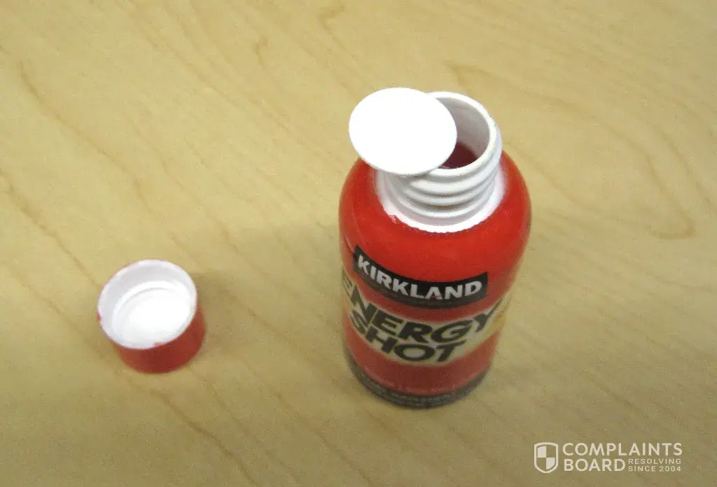 The complaint has to with the cap liner on Energy Shot bottles that stays on the bottle opening after the cap is removed. It usually occurs on the "Orange" flavor for some reason. Anyway, if one removes the cap and drinks from the bottle without looking, the liner ends up in the mouth! I nearly choked on it the first time this happened. I am more careful now, but I can see this as being a serious problem unless the problem is resolved soon.