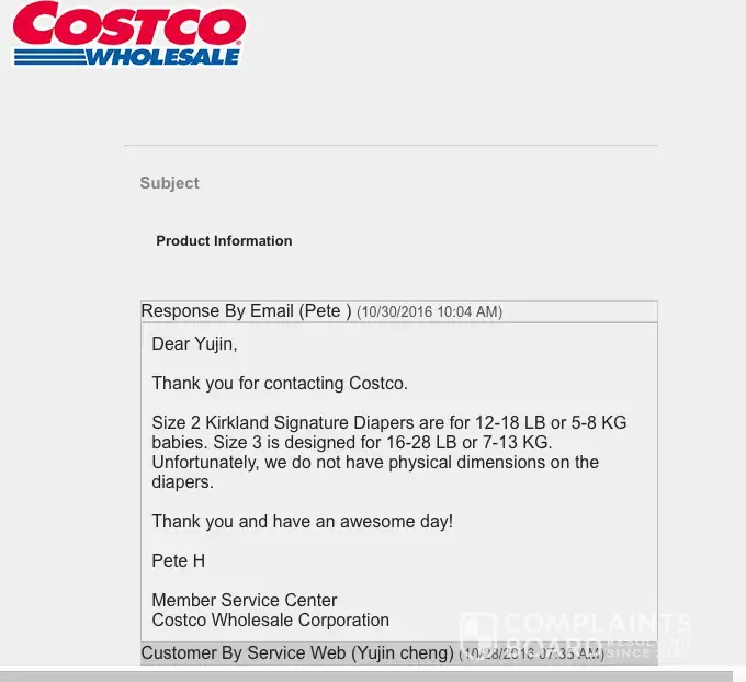 This is customer service from costco. They put the wrong size 2 kirklands diapers in the size 3 box. They don't even bother to check or explain.