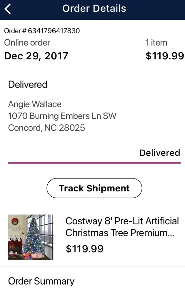 I was sent a defective tree which has exposed wires and sticky with tape. The product is a mess and it was noticeable that this item had been returned by another customer. Inside the box was a note from a woman in Florida requesting full credit. Extremely disappointed with your merchandise. Also missing the so called ornaments (stars). Kathleen Larvey 10 Starling Ave Kingston Ma 02364 Refund my purchase...