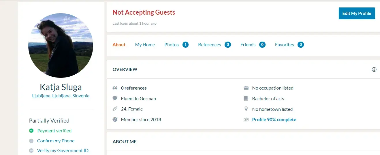 My couchsurfing profile is under the name Katja Sluga.