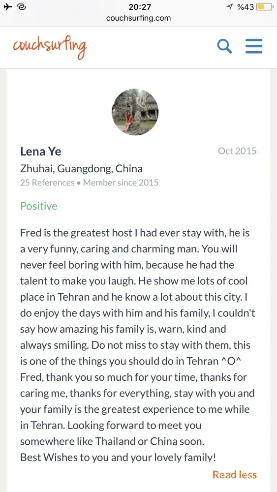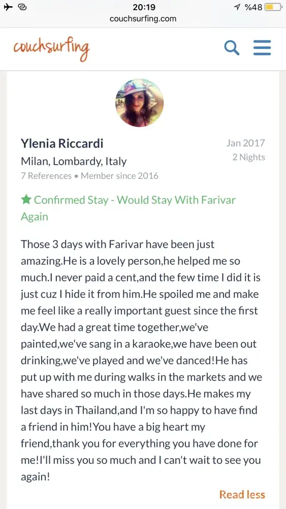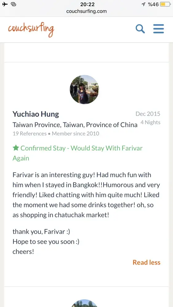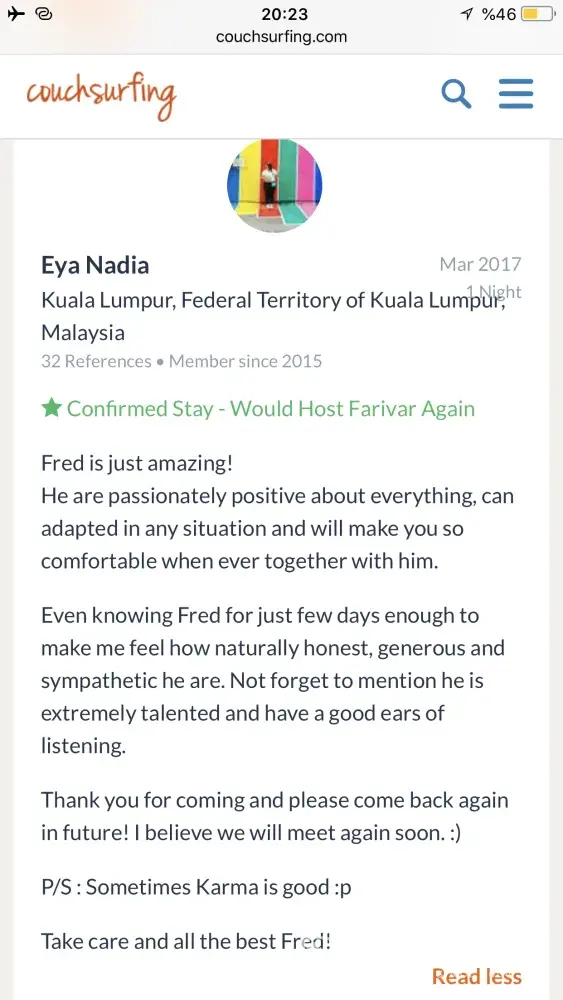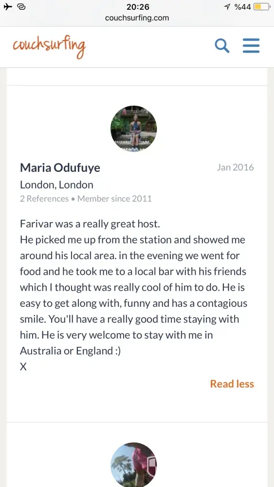 Also I really need an appologise from couchsurfing to me! Because of what couchsurfing did to its trustful and good member