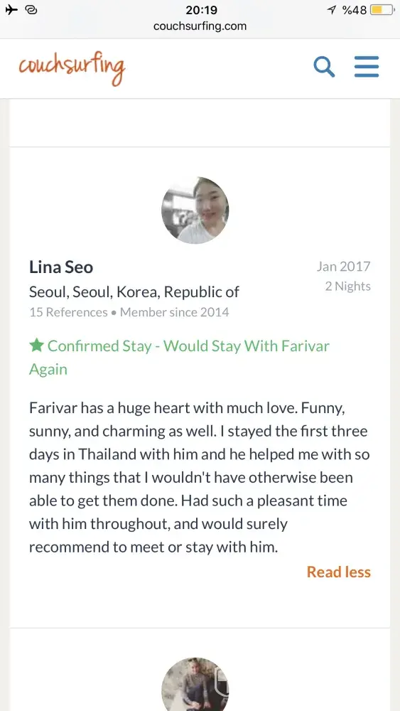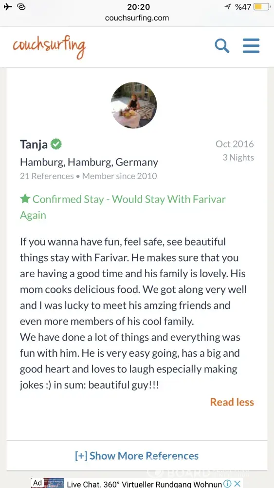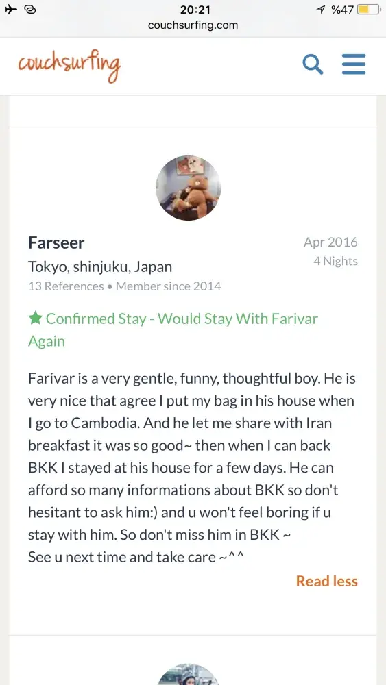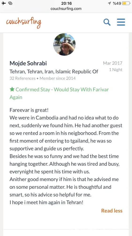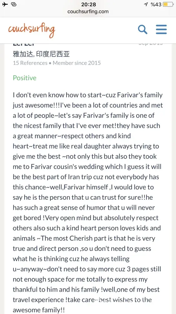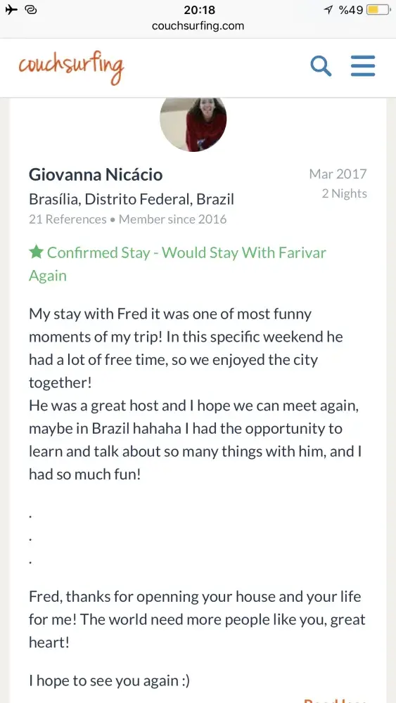 Also I really need an appologise from couchsurfing to me! Because of what couchsurfing did to its trustful and good member