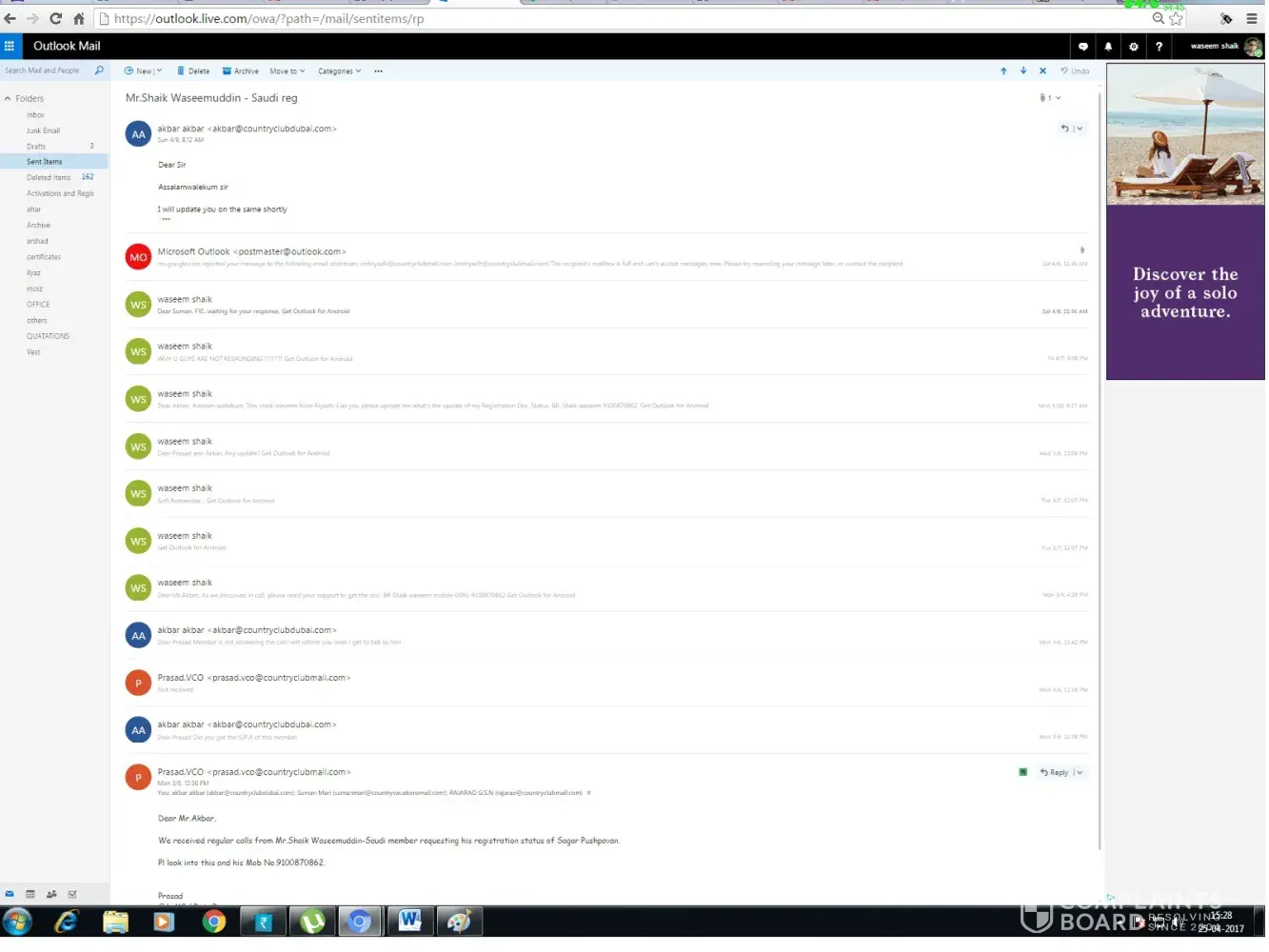 After I come back to india I called Mr.Rizwan more than 20 times he provided Mr.Raghu ([protected]) contact no and informed me to contact him. I follow up with Raghu more than one month later he provided Mr.Prasad Number([protected]) I called him and informed him complete story from staring, He said he don’t have direct contact with Saudi office so, he send email to Mr.Akbar([protected]@countryclubdubai.com) [protected])on 3/6/216.
