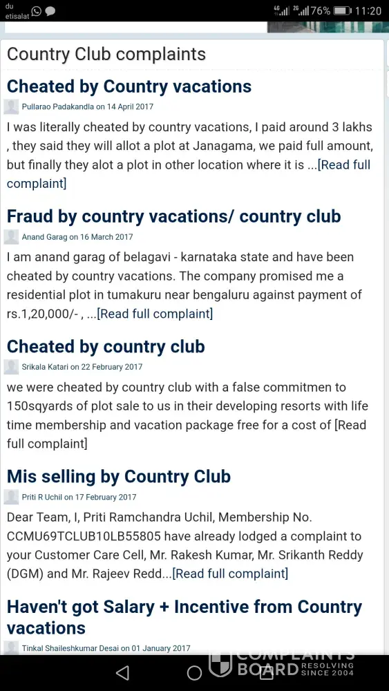 Through Internet I came across a WhatsApp group of other victims from Bangalore and across the country. Trust me sir there are many like me from good family. Country club has taken different amount (60K, 1.5L, 2.5L etc) from them offering false promises.