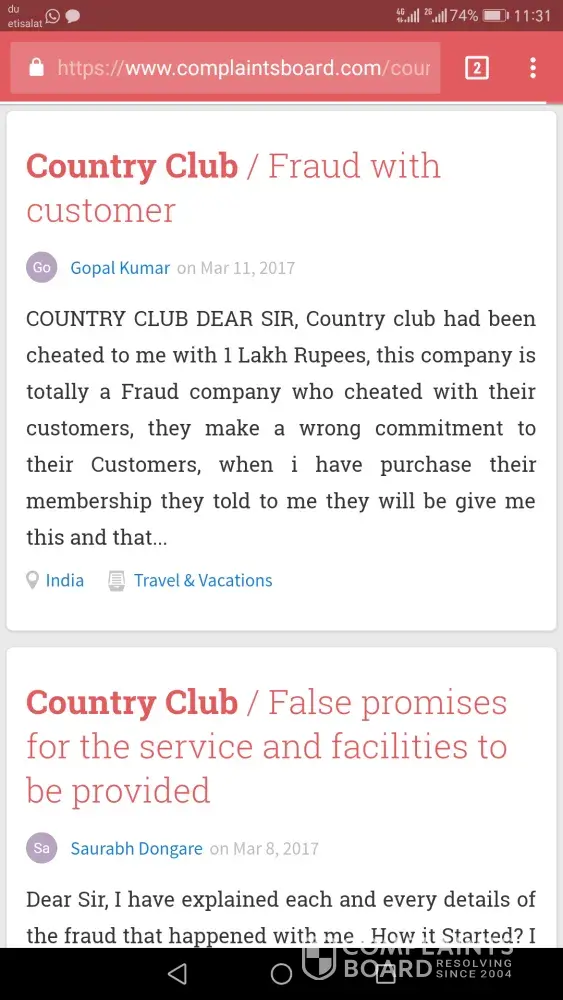 I am here not to say anything about the company as many of customers already said a lot so i just want country club to call me and sort out the matter at the earliest. Thats it.