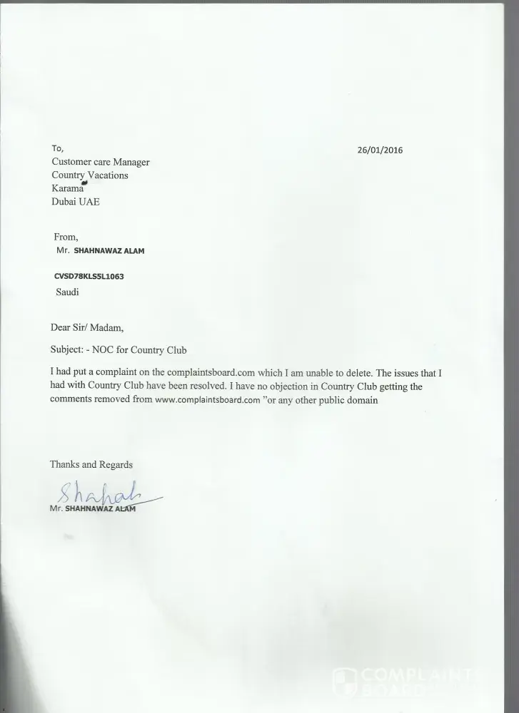 With due respect i am doing my best to help country club / country vacation to resolve my query without any conflict (as everybody can see how much patience i would have showing towards them since 2015...just because i respect my fellow citizens and unfortunately i have been victimized by our fellow citizen only).
