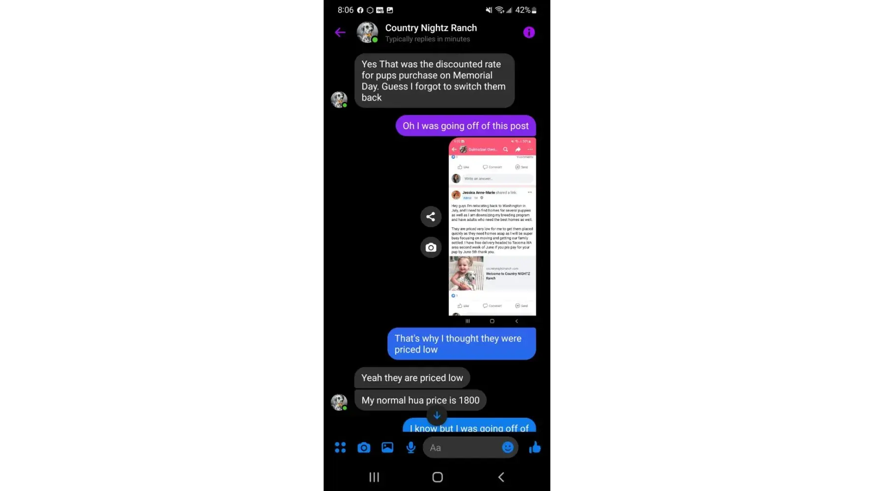 I cannot tag them because now they have me blocked. I will post the context of the conversation, and give the website. Like I said be cautious of doing business with someone that is dishonest or doesn't honor what they advertise!