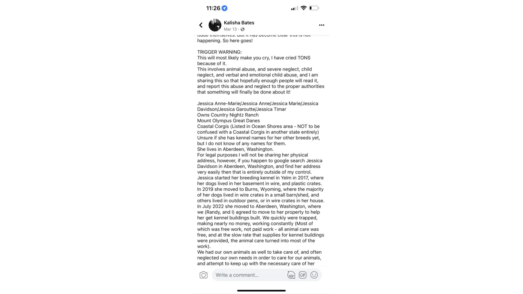 Thank you Roger! Many people are realizing this is a puppy mill. Also, if she had actually had puppies stolen she definitely would have posted about it. She posts everything else in her life on Facebook. It’s just another excuse why she won’t allow people on her property, when like you pointed out, she used to stress not buying a puppy from anyone that won’t allow a visit. She actually says “DO NOT BUY FROM THEM.” So take her own advise and DO NOT BUT FROM COUNTRY NIGHTZ RANCH.