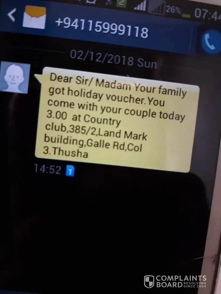 I too got a call from them today and wanted me to come tomorrow to collect the voucher...I felt something is not right about this and it sounded too good to be true.I was searching for country club pvt Ltd online and came across your feedback.we need to inform the cops about these scammers and make sure they get punished.Thank you ever so much for writing this piece and bringing awareness to others.