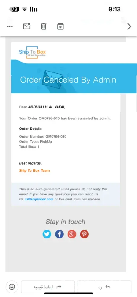 Read full complaintShipToBox - My shipment was stolen on the grounds that it was banned, knowing that it was not in the United States