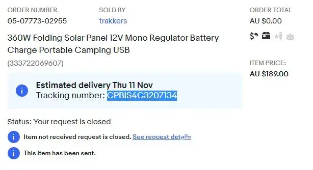 Desired outcome: Reimbursement if the full amount of the items and shipping costs $50.35 AU