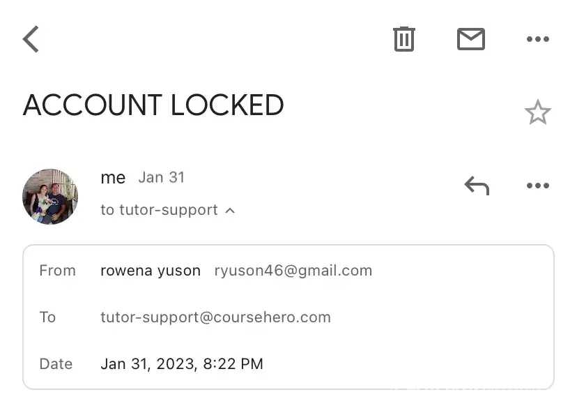 Desired outcome: En-able my tutor account and withdraw my earnings. I want to be able to relogin my account using my registered course hero email address: ([protected]@gmail.com)
