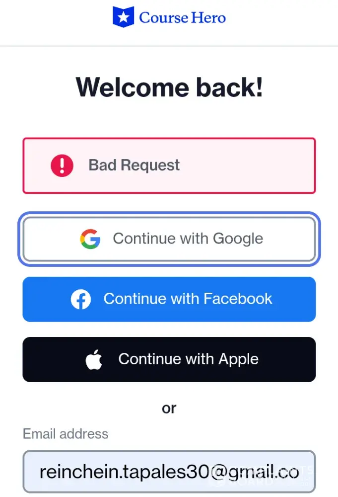 Desired outcome: I want to be able to relogin my account using my email address: (reinchein.[protected]@gmail.com)