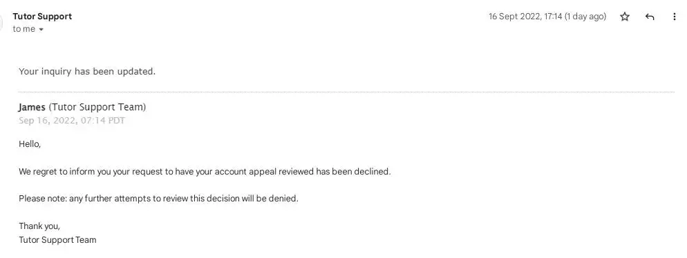 I already contacted tutor-support@coursehero.com. The tutor support said it was final and unappealable. Is this how you make money?