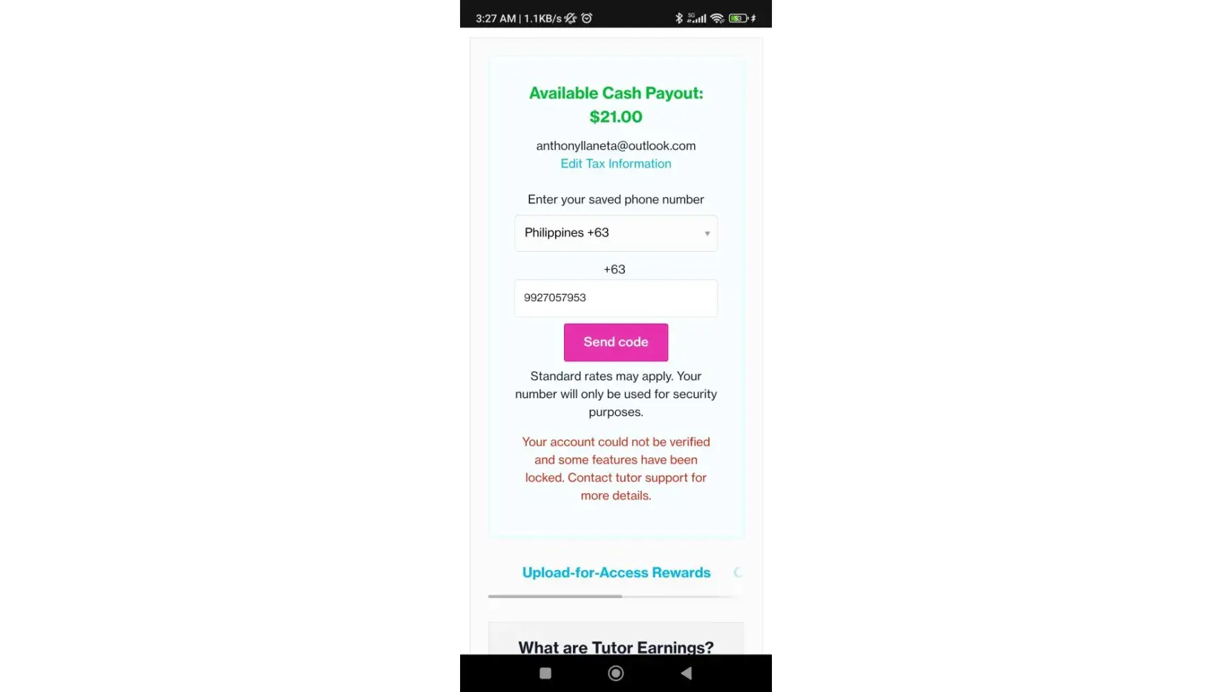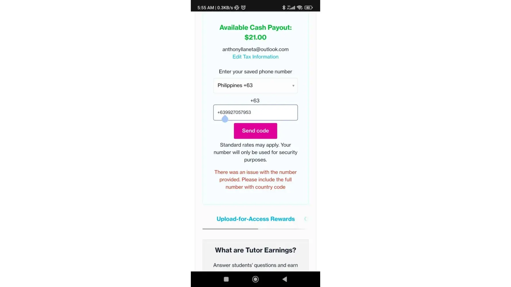 When I tried to cash out my payment, this error happened. When I copy pasted my phone number, I lately noticed that I did not include the last digit of my number why I got this error. I know I'm being lazy to type the phone number here, but freezing the account and not being able to cash out the fund is outrageous. They are making a profit by stealing money from tutors!