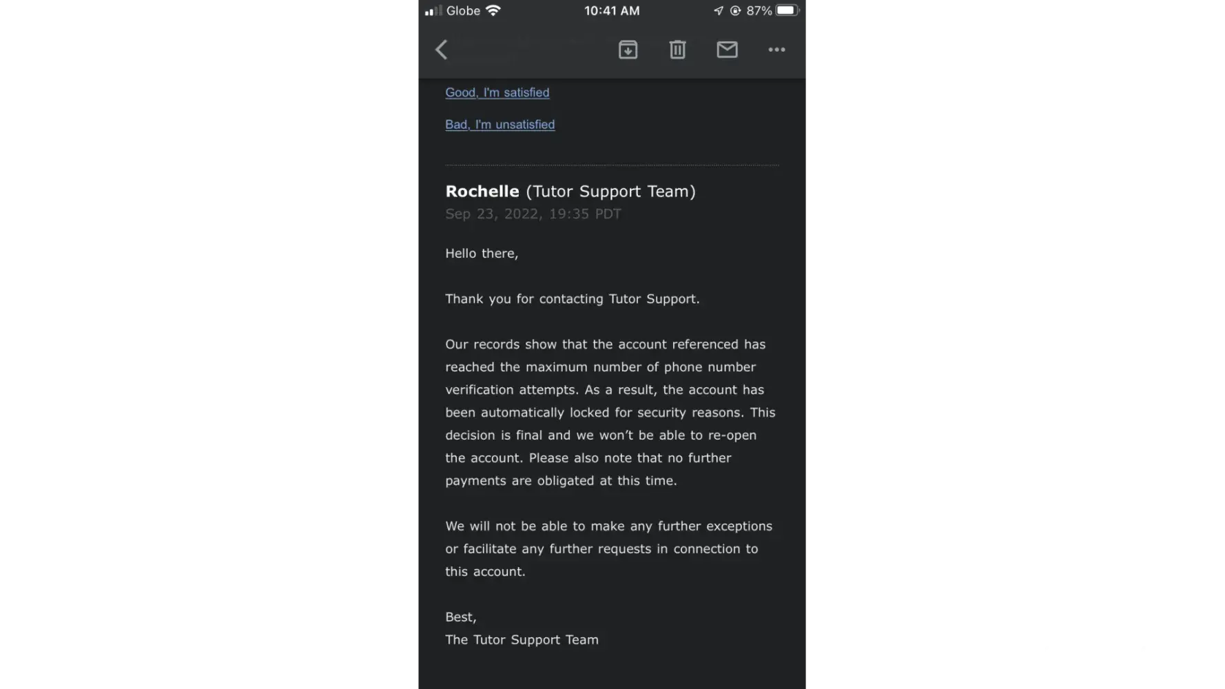 Their support team’s respond is very disappointing as they said it is unappealable. I saw a lot of complaints on their social media accounts but they are being oblivious about these