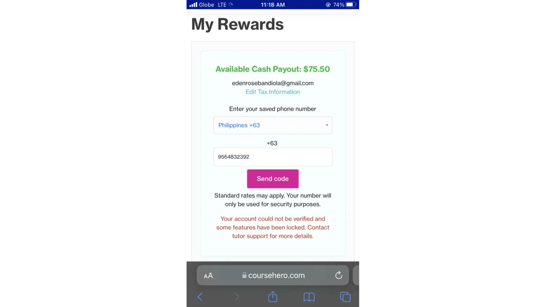 Course Hero Course Hero - Verification Error when Cashing Out. They want to steal my hard earned money