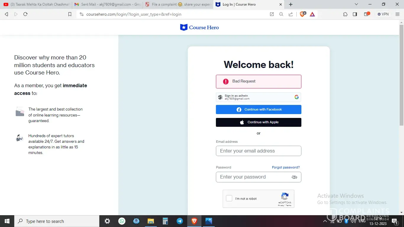 I have been a tutor in the website Course Hero for more than 2 1/2 years. Recently I was dispelled from the service just because I was in a foreign visit. The authorities of this platform misunderstood that I have given my account for someone else as I opened my account during my foreign visit. My location has changed and this has caused me to receive a mail asking to verify my identity using my Indian mobile number and valid id card. But I failed to do it in the time frame because of the unavailability of my Indian mobile network. When I managed to get the code from Course hero, I have crossed the time limit and exceed 12 hours than time frame. I have mailed them saying my desperate situation and implored to reinstate my account back. But, they adhered to their strict illogical claim. Please take necessary action upon this and help me to recover my account. I have to obtain 50 dollars as a remuneration for my service. I need to get that amount too.
