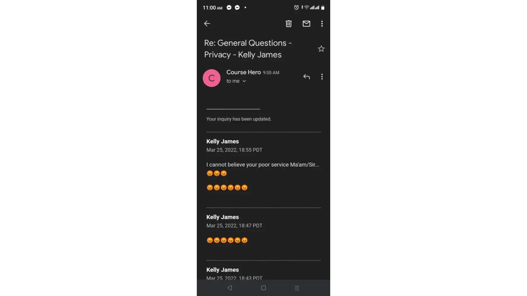 Hi! I accidentally deleted my account with course hero and I cannot delete the documents I have uploaded anymore. I want it be deleted because it has confidential and private information that include my name, my other personal information, the identity of the school, of the learners. I didn't know that in their terms and conditions since all I wanted was to upload and download educational resources. I tried to ask help through email in their customer support but I did not get help, I just received email from them that there are no uploads under the email addresses I provided and that I can file a takedown notice since I cannot access my accounts with them anymore because I deleted them. After that, march 25, I received emails saying my complaint has been updated. I was thinking they could help me already because on that day, same issue, the other websites where I registered and deleted my account as well were able to delete the documents after just few hours. So I was thinking why it is taking them so long - I already provided the necessary information they need like urls of the documents I want to be removed, the email addresses I used for uploading those docs, and all the necessary information they need because I want to cooperate with them. Then last night, I followed up. But I only received a response containing a line and that's it. I emailed back to follow up. But I still received a line. I was using my 3 email addresses because I am not sure which of these accounts did I use to upload documents with their website. Then I received an email this morning saying they could not fix this immediately because of a severe weather, that it is holiday and that january is peak season like that. What? This is not holidays anymore.. It seems like they just copied the message from an old email and sent it to me. I am really disappointed today. I kept on receiving responses from them containing lines only. What if somebody sees the documents so they would play safe? I asked a friend and told me to contact the web owner. I did messaged sir grauer and mr. Carrigan but no response. I messaged the official facebook page of course hero and they directed me to customer support. Which I did for a week already. I even loaded my simcard but I could not contact the number of course hero. I could not do my household chores, I could not sleep well, I could eat on time, I just have my cellphone and netbook in front of me for a few days and I could not even take care of my kids! So I decided to file a complaint here so that we could all fix this as soon as possible. I am very mentally tortured now and I have babies who need me and I was even thinking of ending my life. Thank you so much and godbless you in all you do.