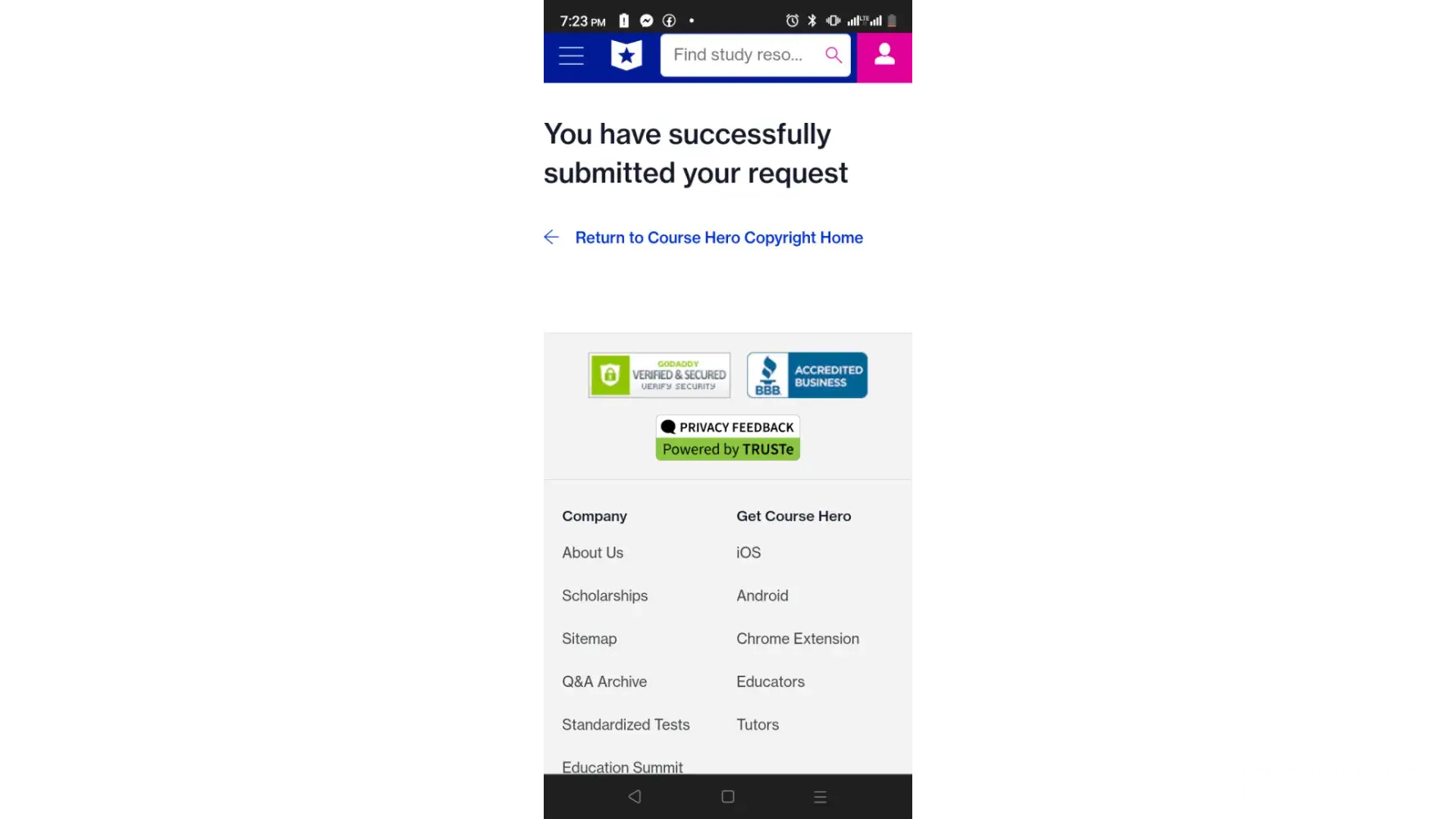 Even I have requested coursehero to remove it by filling an infringement data page something like that. But that document is still there and my submission date is coming closer.