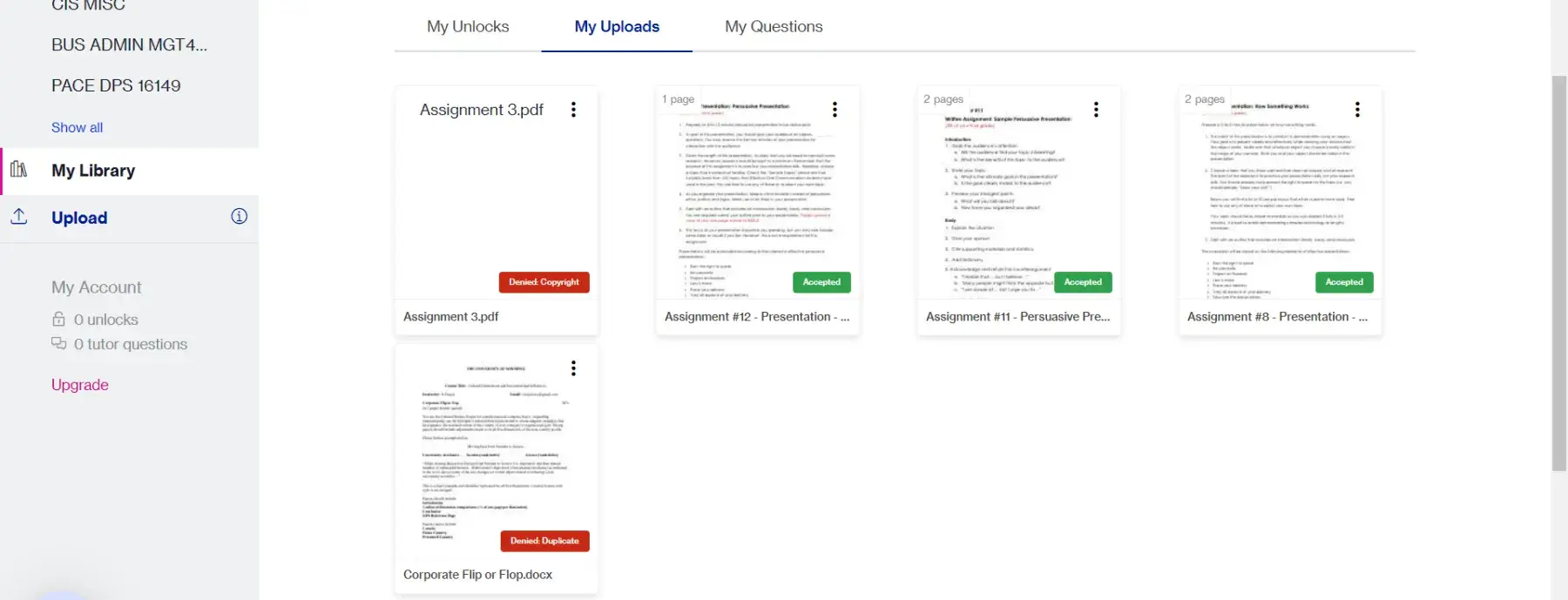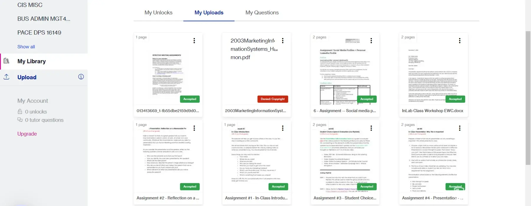 Desired outcome: All uploaded documents to be removed from Course Hero.
