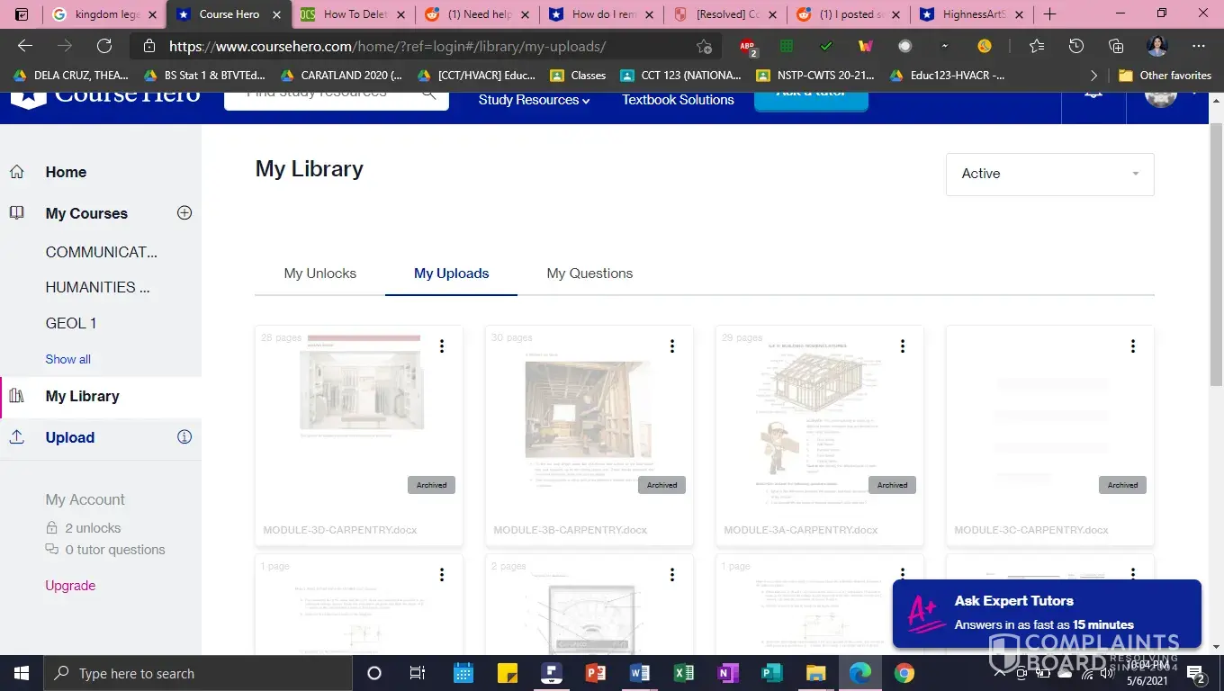 I have a course hero account and I would like all the documents that I uploaded today to be deleted. My professor just recently today reached out to me to delete the documents for copyright reasons.