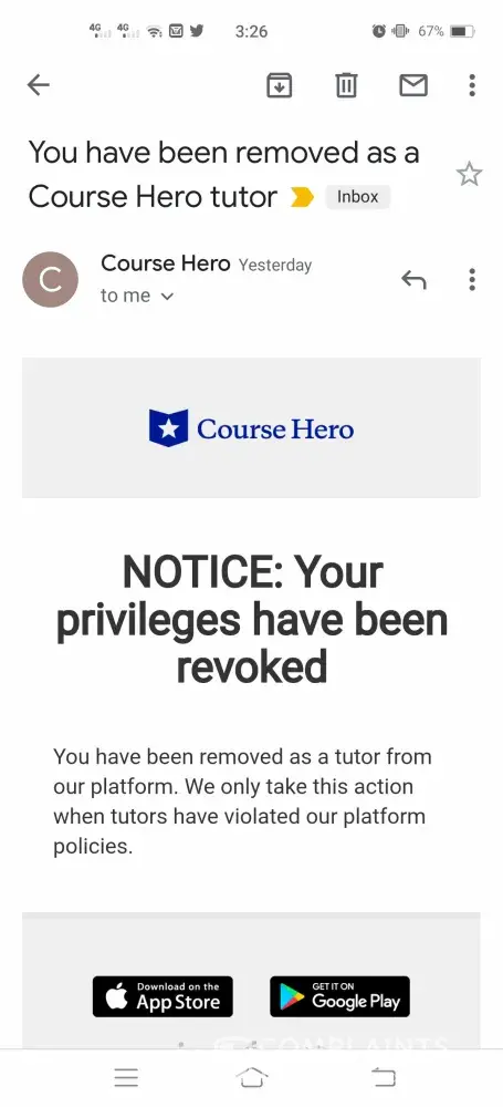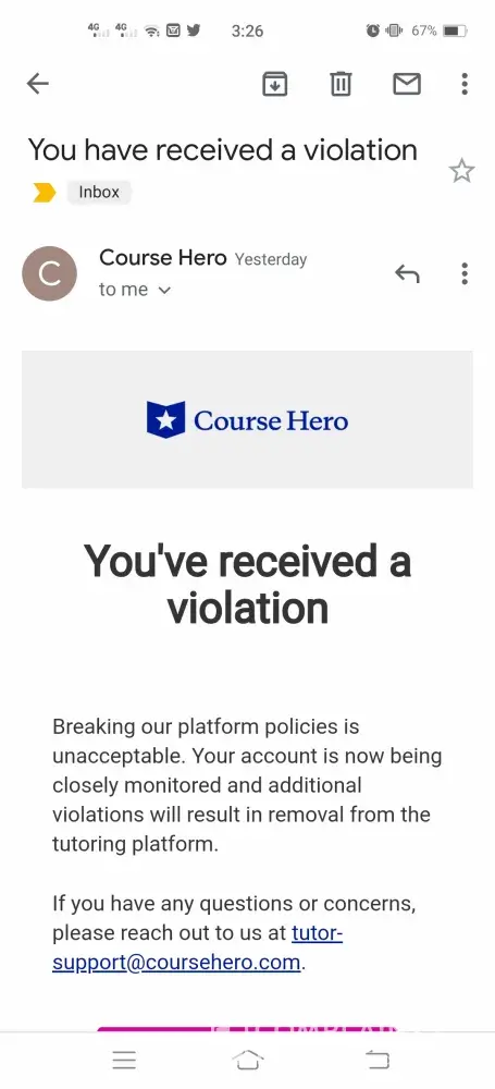 Its just my 2nd month on course hero and I don't have any violations or warnings I have 100% helpful rate then up until now. I can't access my account anymore. I tried emailing the support team but they are not replying to my emails. I want to know why my account was revoked and why I can't login. I have 100%helpful rate with no violations or warnings whatsoever.