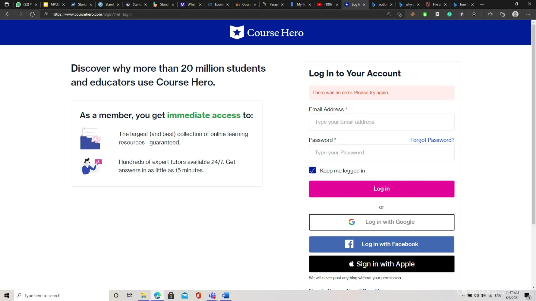 Why I cant access my account, I tried to log in just 2 hours ago and upload some files to get my free unlocks. While my uploads are processing I just leave it there, when I came back it got log out. When I tried to log in again, it cant pass in the log in page and the message keep saying "There was an error. Please try again." My account is relatively new, and this happened today May 23, 2021 and I hope you can resolve this issue. This actually the 2nd time that my account was deleted, or I really dont know if I got banned or anything. Please just let me know.