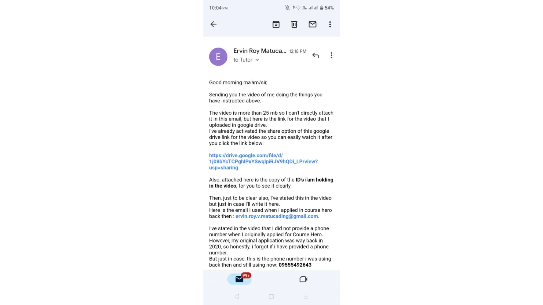 Desired outcome: My desired outcome for this matter is to have my account re-enabled so that I can access my pending payment of 120$.My name is Ervin Roy V. Matucading and this is my email address in course hero: ervin.roy.v.[protected]@gmail.com