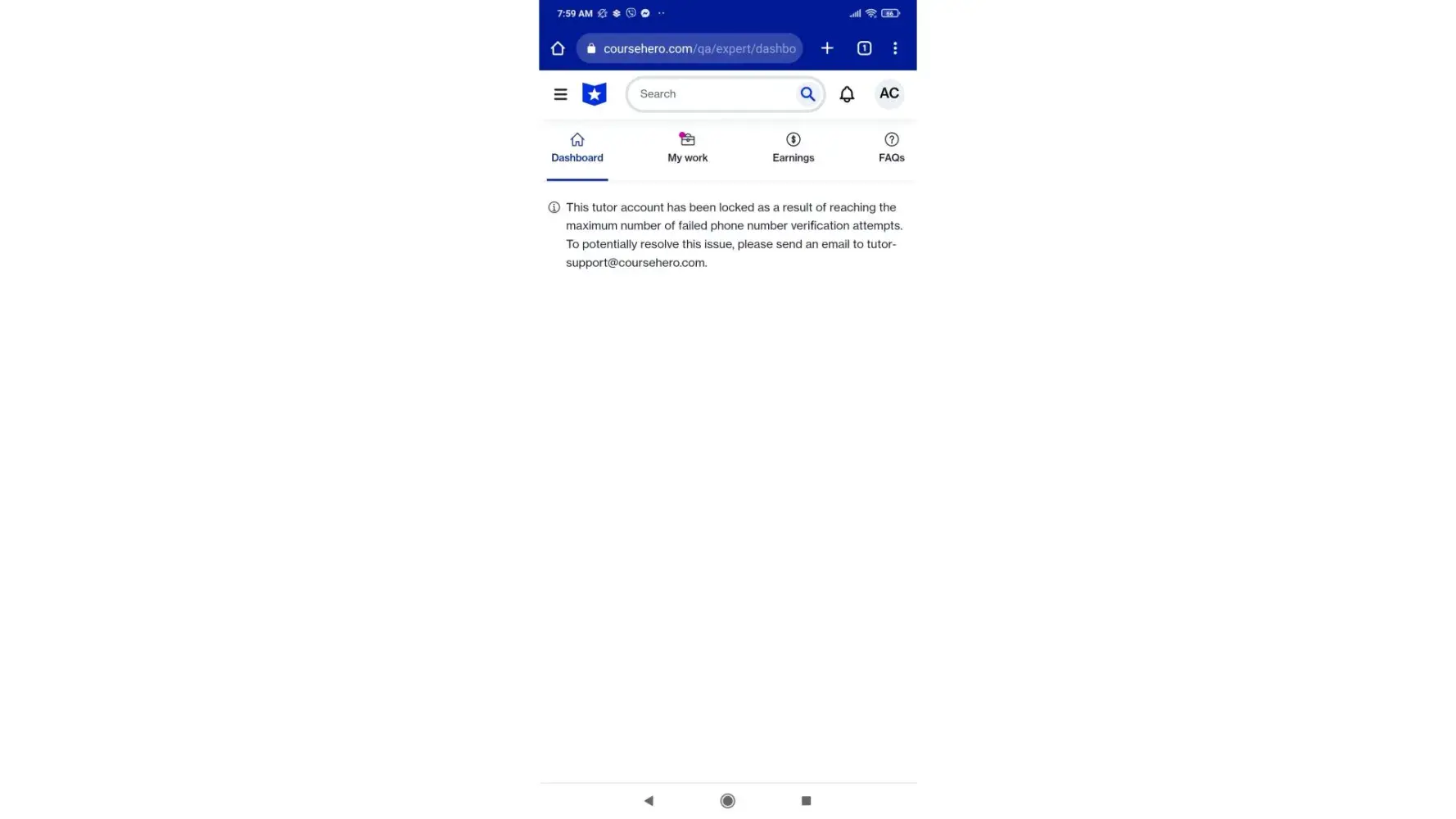 I have tried withdraw my balance in my tutor dashboard. But because of unreliable sognal, it kept on refershing which results to multiple request of verification code from my number. Sadly, my account was temporarily disabled and to my dismay Jane the Course Hero support siad that I have violated some oof their rules which I didn't do any of it. All I want is to withdraw my remaining balance because I have put my bedt effort to provide the answers.