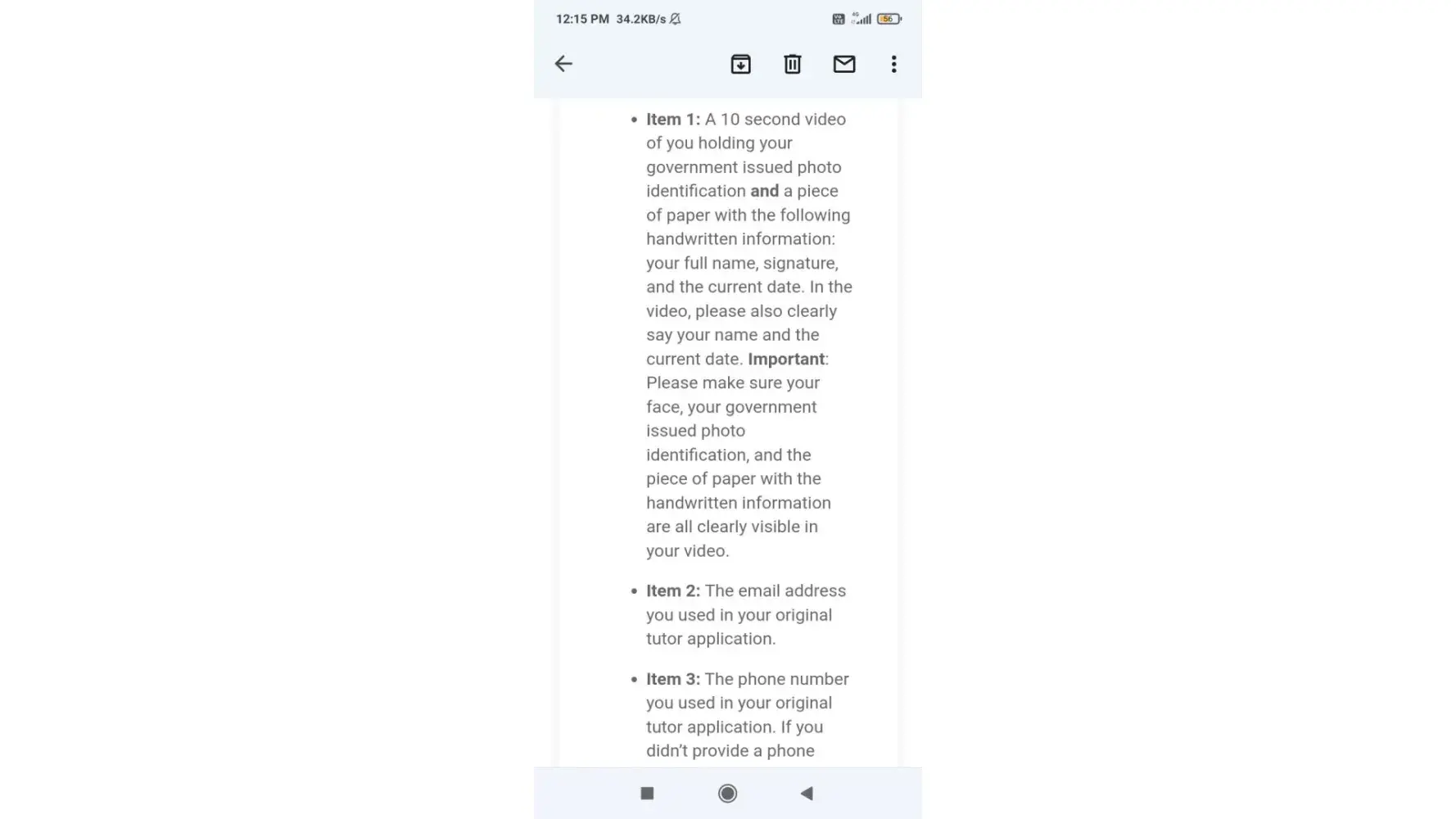 Then early this morning, I received an email from their support team asking me to send a video with my face together with my name and ID. I did submit this.