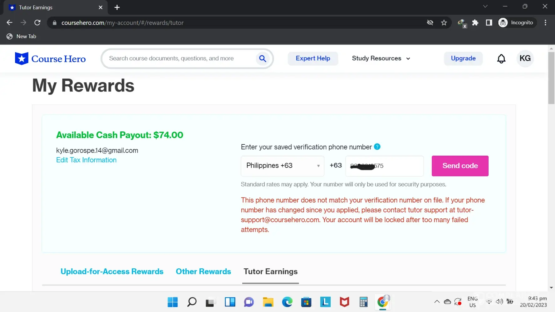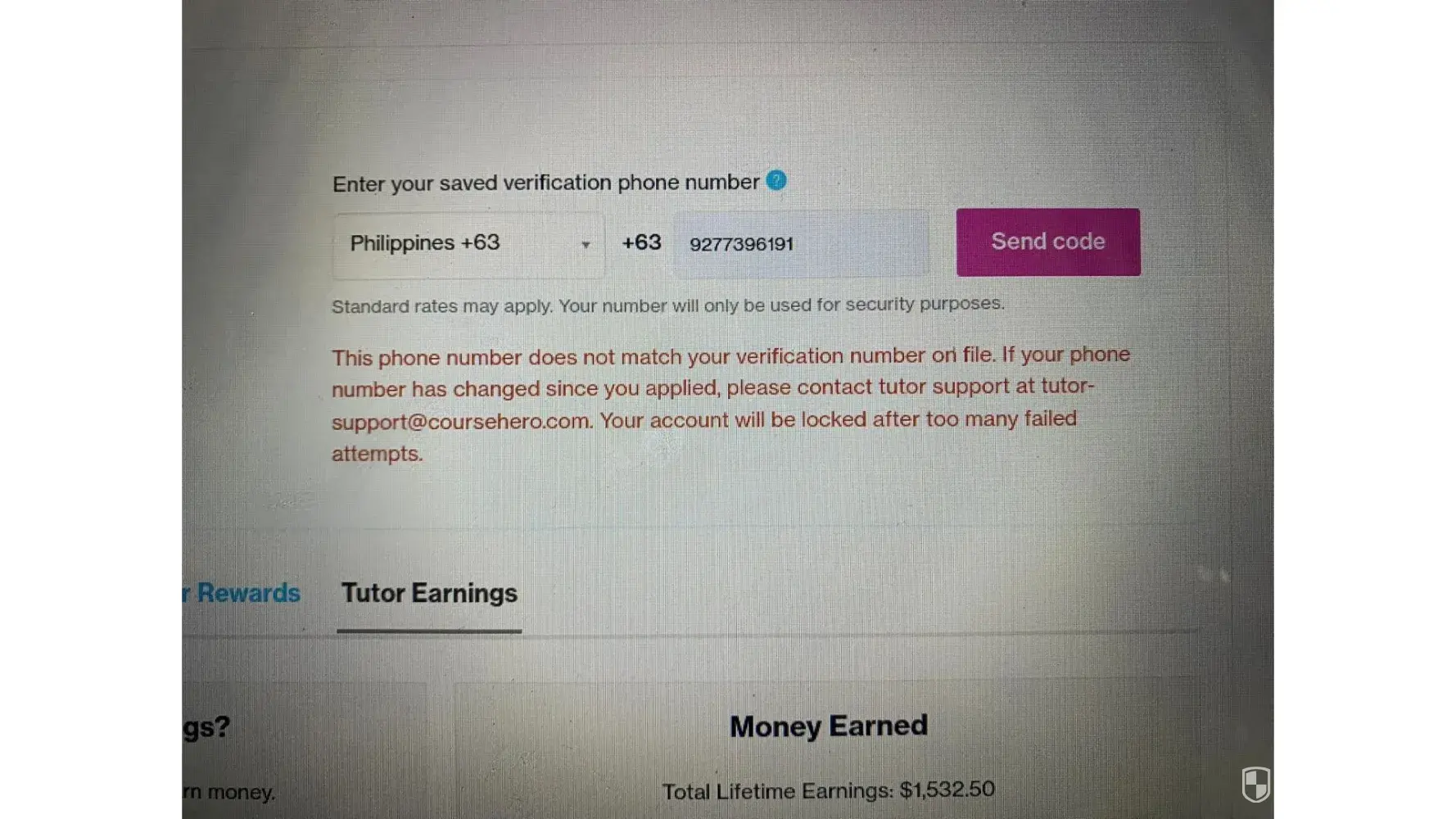 I am unable to withdraw my salary from Course Hero despite having a minimum available cash pay-out of more than $20, which is the minimum requirement for withdrawal. After attempting to verify my number, I received a response stating that my account could not be verified and some features have been locked. This is unethical to lock me out of answering questions for students due to an error and freezing my hard-earned money.