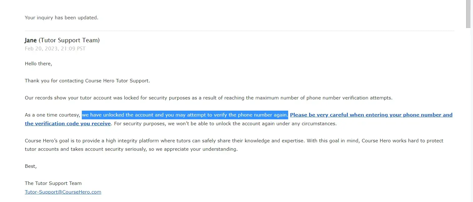 Course Hero permanently disables my tutor account. I just emailed them a week ago looking for assistance on how to verify/ update my phone number to be able to withdraw my earnings because when I applied to them before, they didn't require me to put a contact number. But since CH has been strict now and there were lots of changes and updates that happened...