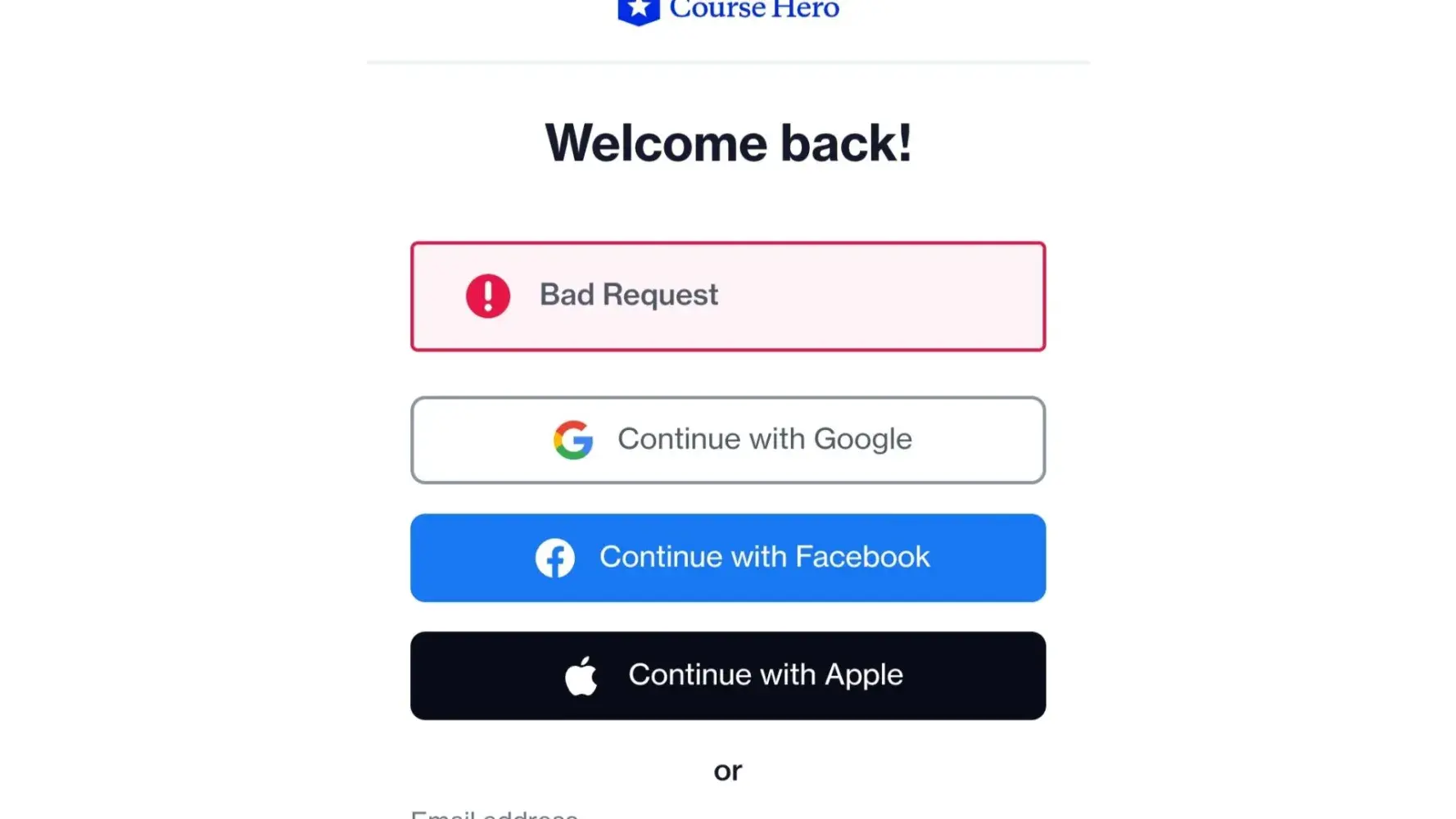 I am facing troubles while login into course hero account through google and popped out "bad request"