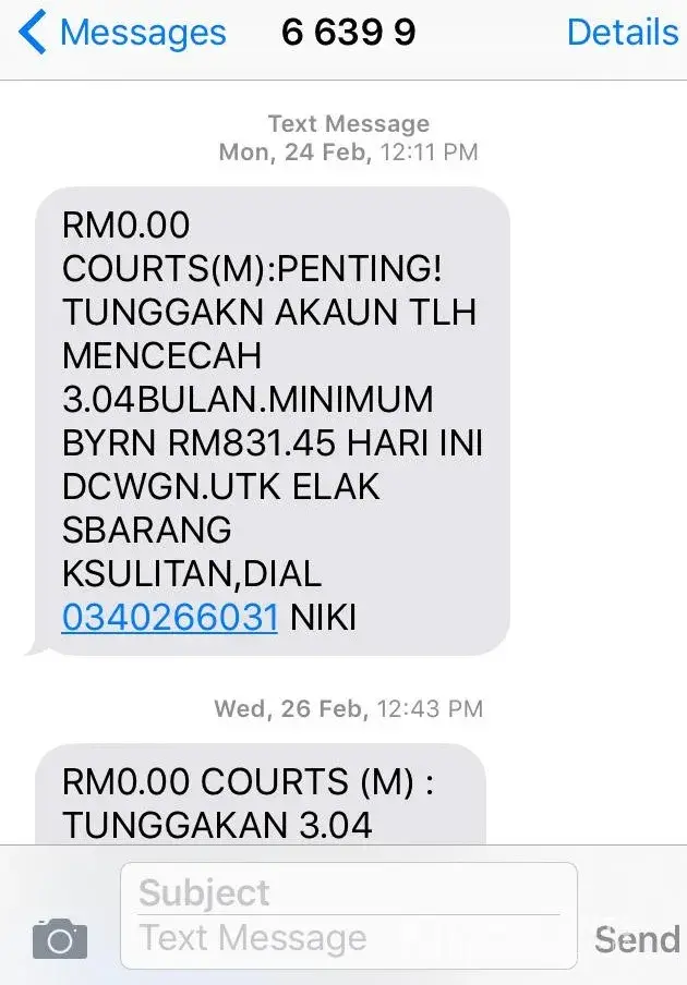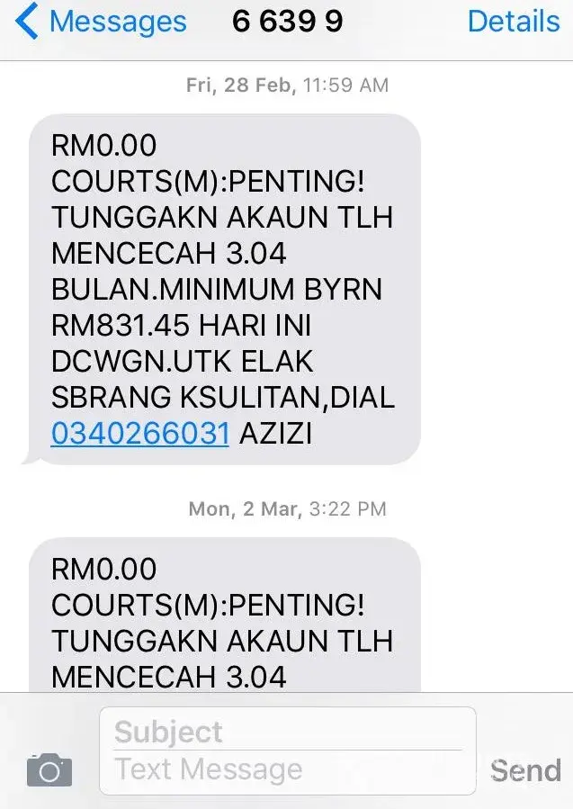 Courts mammoth patut kena prihatin sedikit masa moc pun ashik call minta hutang. Macamana nak bayar tak boleh keluar kerja. Kemungkinan kerajaan akan extend lagi moc hingga akhir june. Duit nak makan pun tak cukup ini nak bayar hutang. Sebelum covid19 lockdown saya dah pergi customer service nak minta bayar sedikit demi sedikit department ni pass department ni... Etc malaysia patut tubuhkan satu "perbankan" yang boleh orang yang ada tunggakan dengan courts mammoth pergi ke satu pertubuhan yang dapat membela orang yang seperti saya dalam keadaan yang tak berduit nak bayar. Ini dah beritahu macam-macam pun still perah orang bayar. Takda peri kemanusiaan langsung. Orang rohingya pun dilayan lebih baik... Debts collector a nightmare. Banyak kali dah explain tapi mereka tak faham. Macamana nak bayar kalau dalam masa 7 bulan 8 kali kena berhenti kerja tanpa alasan... Dan nak buat matter worse kena lockdown pula... Saya berharap kerajaan dapat prihatin dengan kami yang terpaksa lockdown ditambah pula dengan bebanan hutang. Minta jasa baik kerajaan dapat berbincang dengan "courts mamoth" supaya pembayaran hutang "ditangguhkan" selama 6 bulan sama seperti bank-bank yang lain bayar balik selepas lockdown dah lifted sebab we have no choice sebab takde source of income. Interest dah la mahal lepastu masa beli, mereka sengaja buat agreement berjela-jela so that customer malas nak baca terus je sign. Once dah sign agreement, memang locked down lah dengan interest yang 4x ganda. Mereka tak transparency... Nak commission atas kesusahan orang lain... Sedih betul... Riba yang melambung tinggi. Saya beli computer & ipad aje dan kalau beli dari luar total dalam rm5k max tapi dengan courts total rm16k saya kena bayar... Gila! Lebih mahal dari along, peras ugut pun dah macam loan shark... Please kerajaan do something about this matter. Boleh tak tubuhkan satu badan perbankan islam yang khas untuk pemiutang dengan courts, telco, ptptn etc yang mana boleh consolidate semua hutang dan bayar secara installment dengan interest yang rendah. So dengan cari ini ringan sedikit beban dan masaalah hutang di mlaaysia dapat dikurangkan. Please help us!