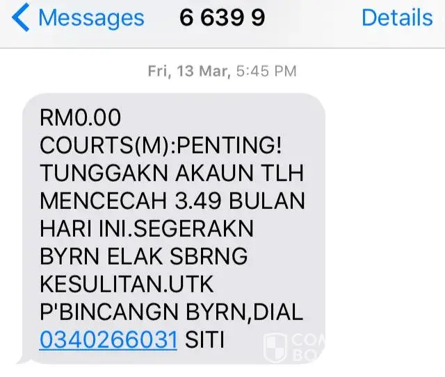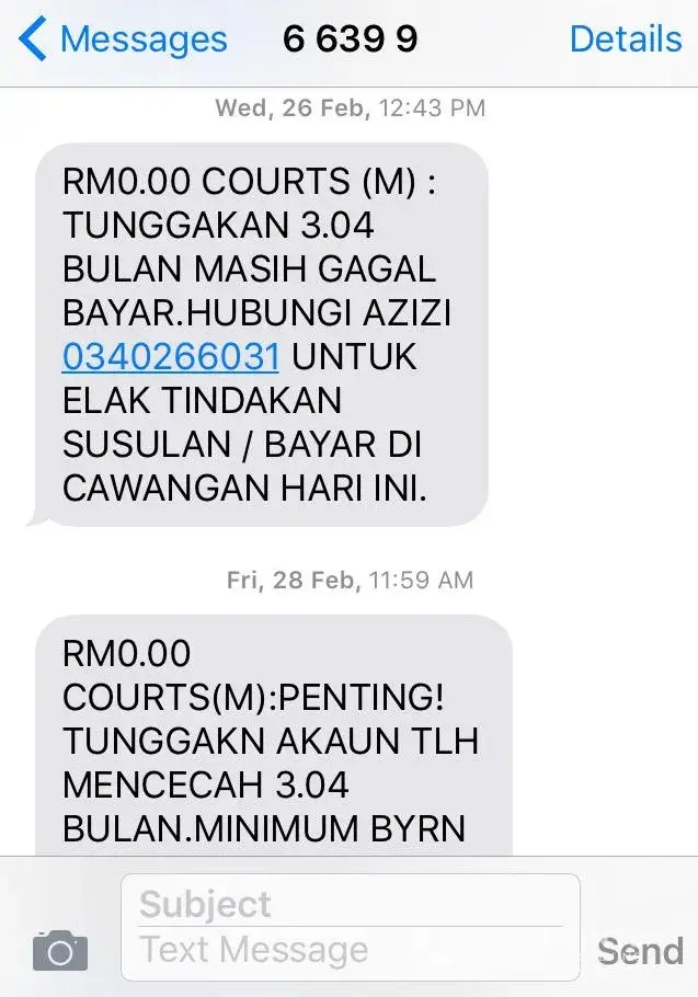 During this mco can u please be considered? Never missed bayar pun.. Now smua mana da kerja.. Majikan dah la haram pun tak byr gaji. Cam ne nak byr ni.. Dah la call mcm along.. Kasar2 call org.. Isit like that your customer service.. Thats why I never answer your call.. Very rude... Dh laaa kena kan tunggakan tgh bulan.. Pelik! First and the last I will buy things from courts.. Luckily tu pun hp.. Do something with it.. Smua org bermasalah.. Bank pun kenakan tangguhan.. Please do something untuk beberapa bulan ni.. Bukan takda duit.. But pikir dulu nak makan.. Berkeperimanusiaan la ckit.. Dan jangan suka2 call org kedua.. Ingat sikit masalah org