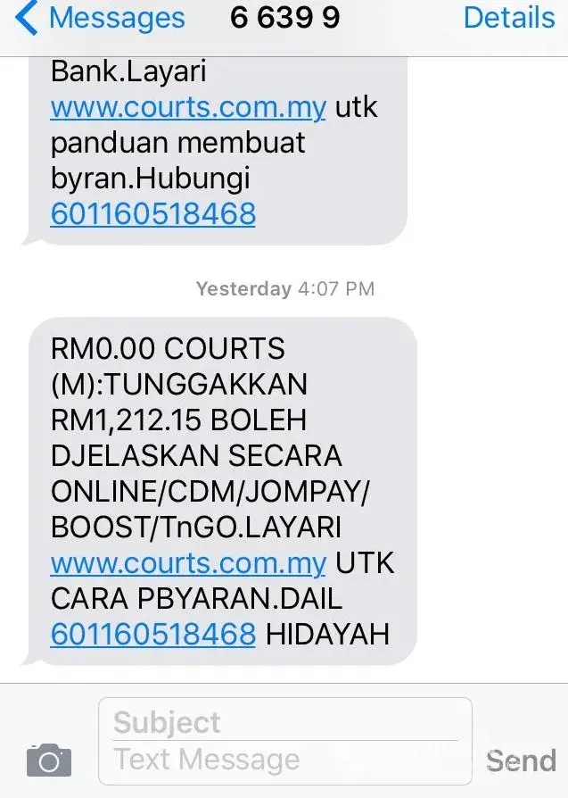 u all bole check my conversation dgn pihak courts..actually u all xmembantu lgsg..sy msg di whtsp pun xde yg reply..i dont really get it apa yg u all buat n sgt mengecewakan..